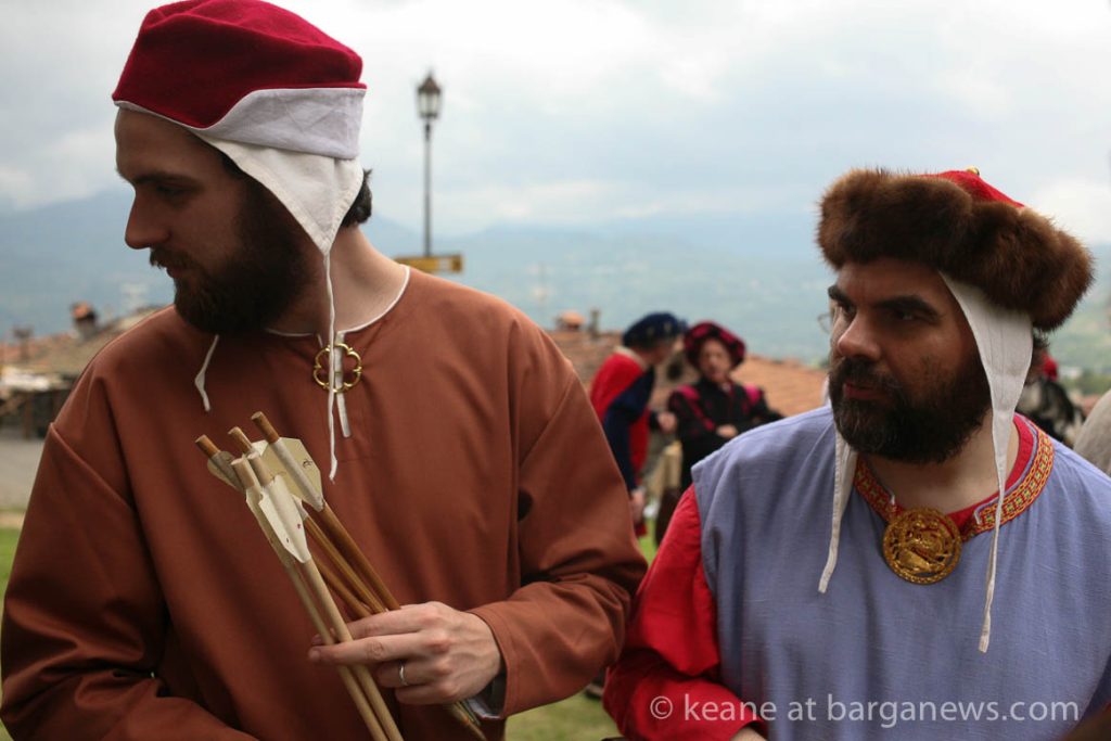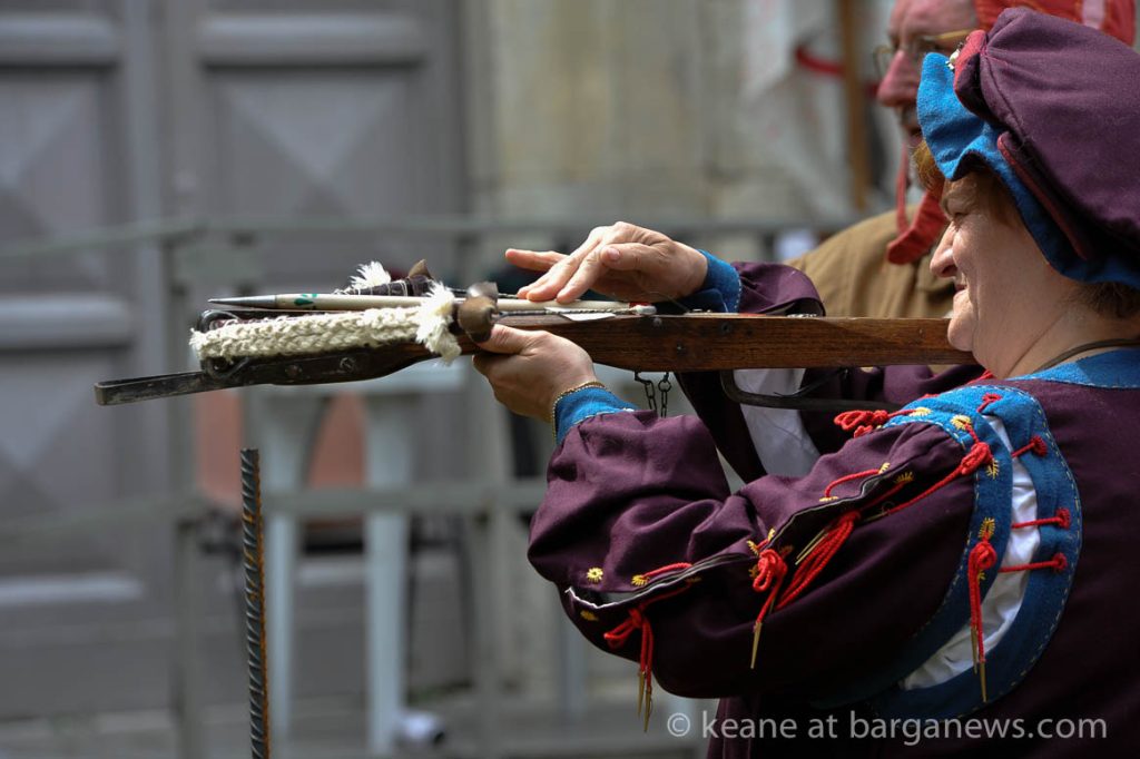Two years ago, in 2012 the event was cancelled because of the terrible weather and this year the rain once again looked as though it would play a negative role in the day as overcast clouds threatened on both sides of the valley but by midday it had still held off and the crossbow men and women continued to shoot up at the Duomo to the delight of the visitors to Barga who had arrived specially for the event.