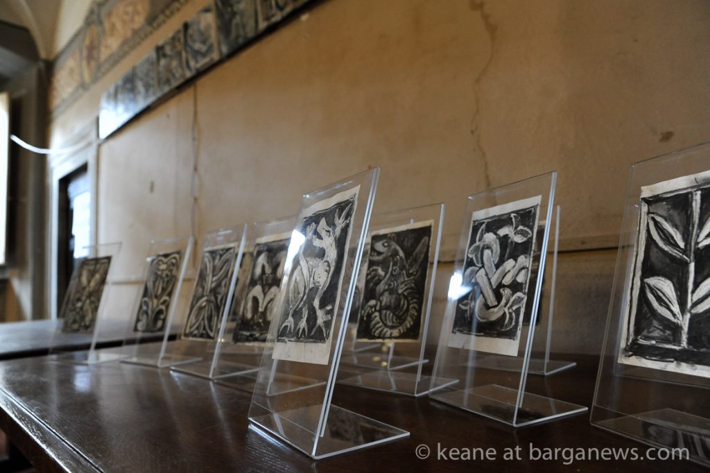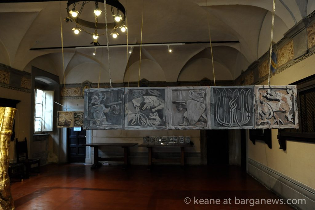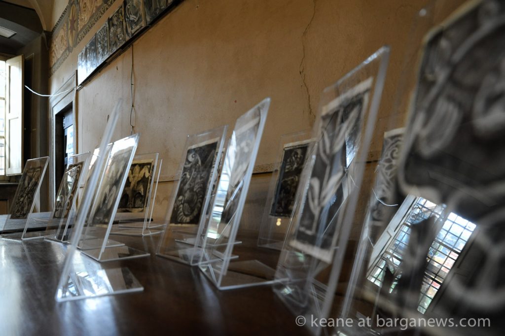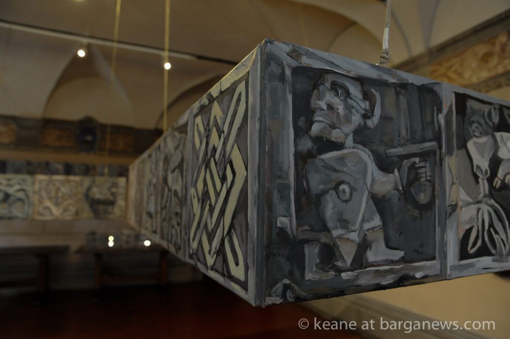 Now comes the painter Keane, who has been documenting Barga’s daily life and rich past for two decades, with 52 canvases that profoundly deepen the mystery. They draw on 212 extraordinary bas-reliefs, mounted so high on the outer parapets of the edifice that passersby and parishioners alike seldom notice them. The age of the sculptures, their provenance, their creators — indeed their very purpose and intention — are all unknown.