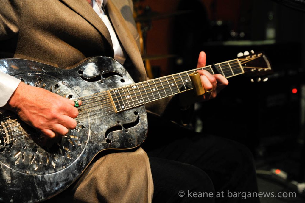 His biggest influences on Electric Guitar have been the “three kings” (Freddie King, Albert King and B.B.) and T Bone Walker. Slide Guitar influences include Elmore James and Muddy Waters, and Acoustic Guitar influences include Robert Johnson and Son House . His biggest influences as a lyricist have been Bob Dylan, Willie Dixon and Mose Allison.