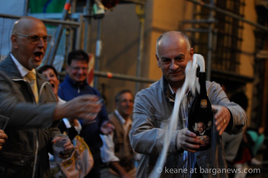 As the last few minutes of Monday 26th May tick to a close, the main square in Barga Vecchia is still full of people celebrating the successful election campaign of Marco Bonini and his Insiemi per il futuro candidates.