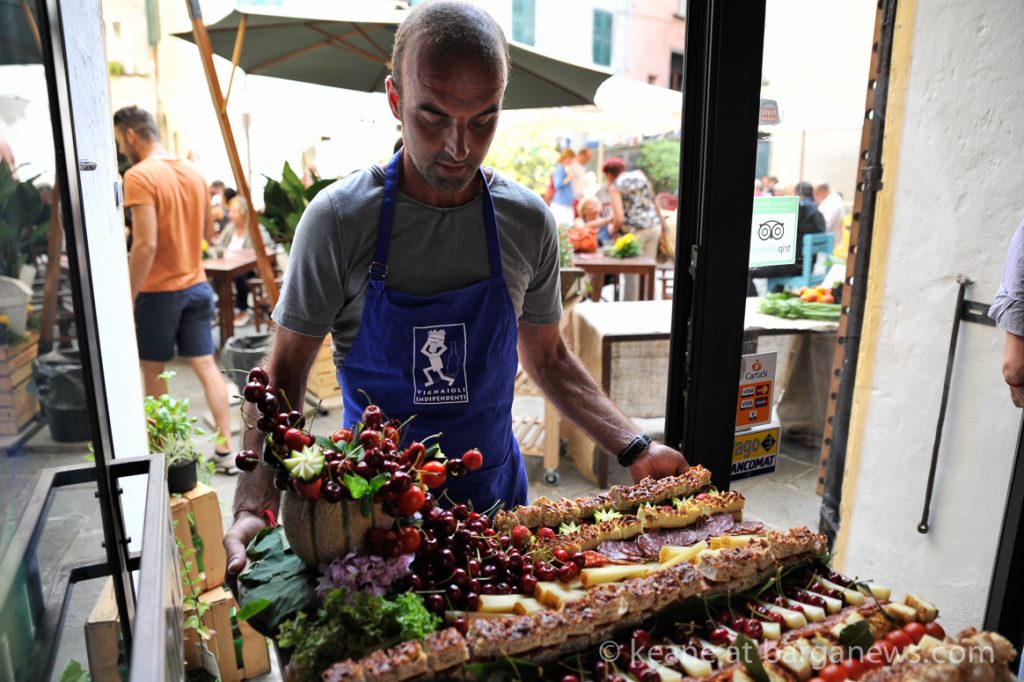 Giulio Turriani speaking (in Italiano) outside his new premises in Barga this morning