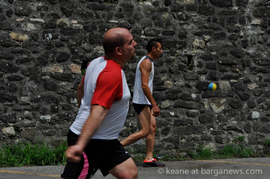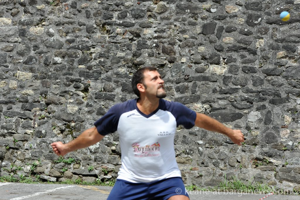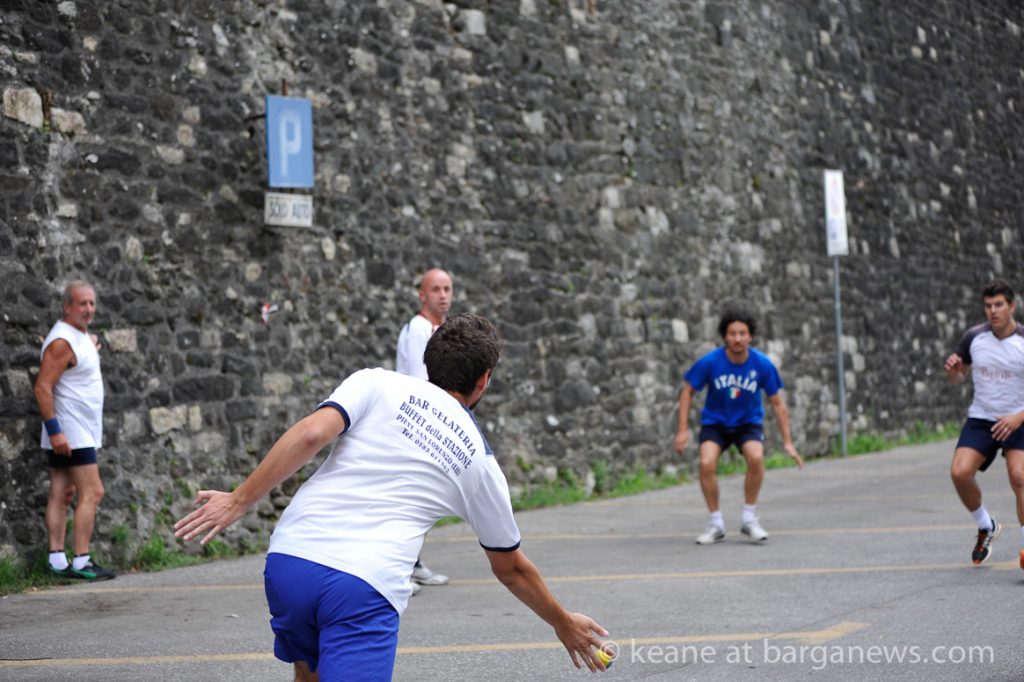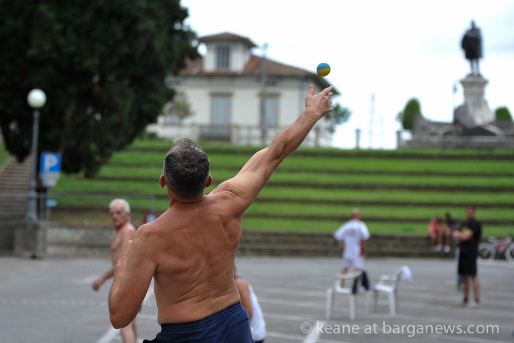 Gioco della palla elastica is played with the open hand or fist and with a much lighter ball but this too has a history going right back through medieval Italy and according to the President of Palla Elastica Vallico a good deal further back as images of athletes playing a version of this game can be found of Greek vases dating back many thousands of years.
