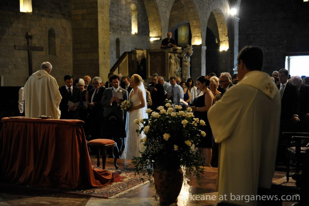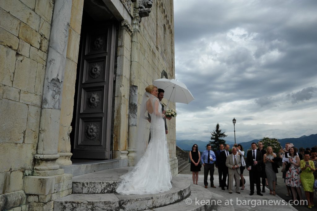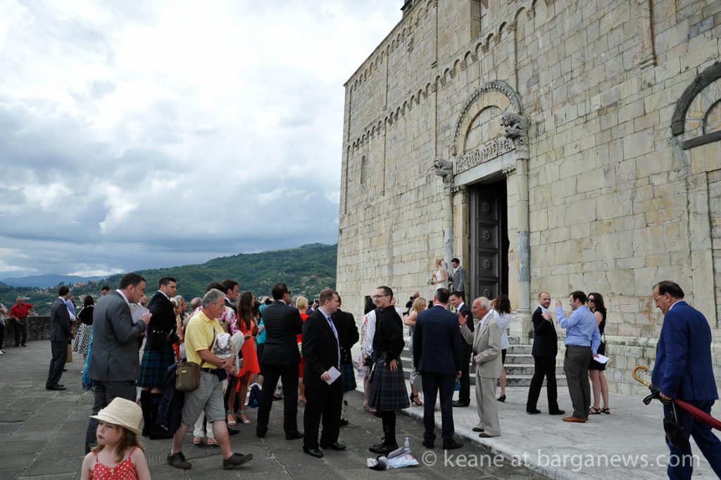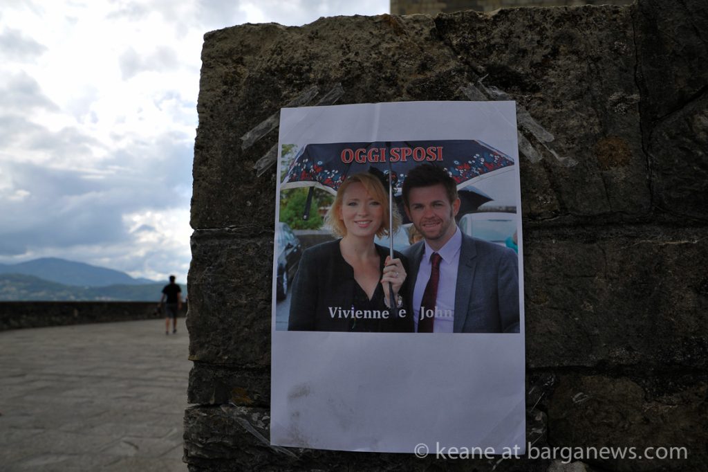 Kilts and umbrellas were in evidence this weekend as the centuries old bells of Barga rang out over the city to celebrate the wedding of Vivienne and John.