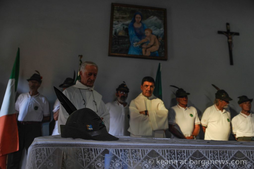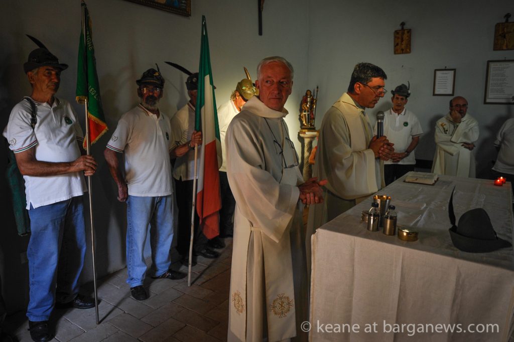 Strangely on such a hot and balmy day as today, with temperatures hovering round the 36 degree mark, the chapel is dedicated to the Madonna della Neve, The Madonna of the Snow, the irony of which was not lost by those suffering in the heat or on Don Stefano Serafini as you can hear in the short audio below.