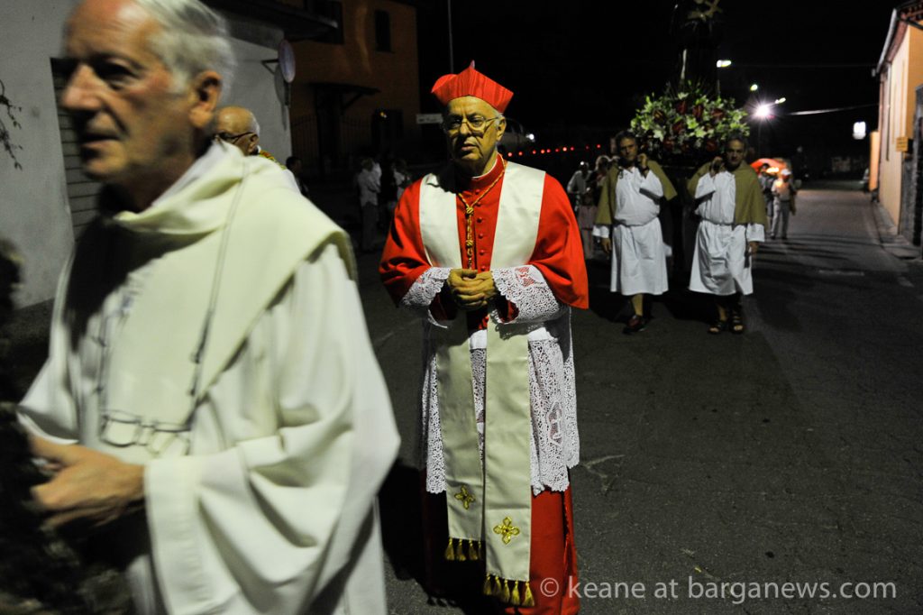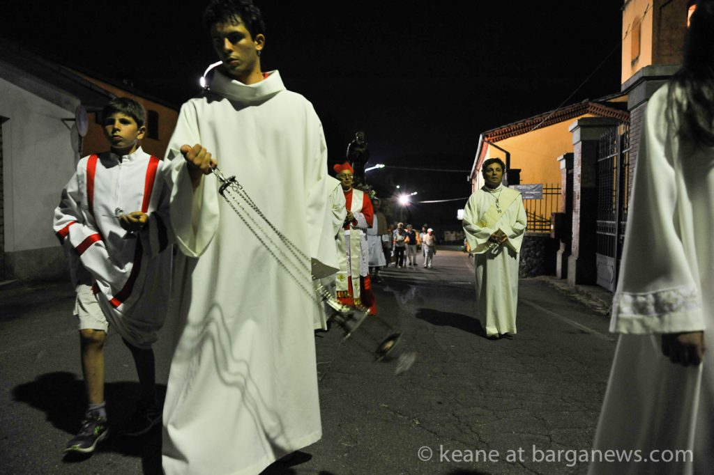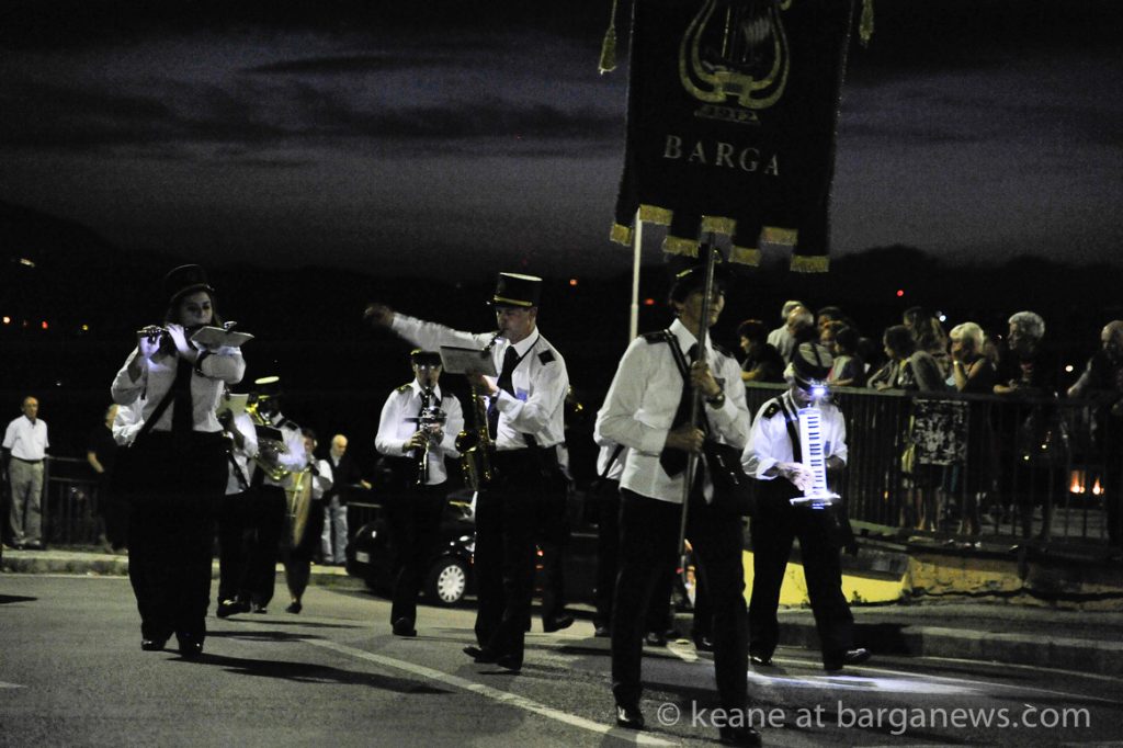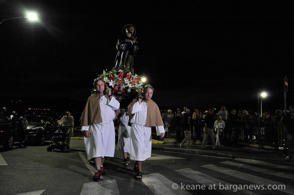 It’s 9.30 on a hot and sticky August night in Barga. The temperature has been up in the high 30s all day and it feels like its still climbing. Four men are carrying a heavy wooden statue of St. Francesco along the streets on their shoulders. They are following the local priest who is struggling to keep ahead of the local 30 piece band.