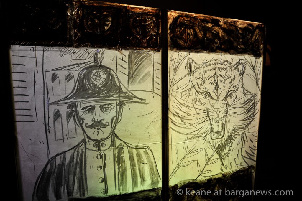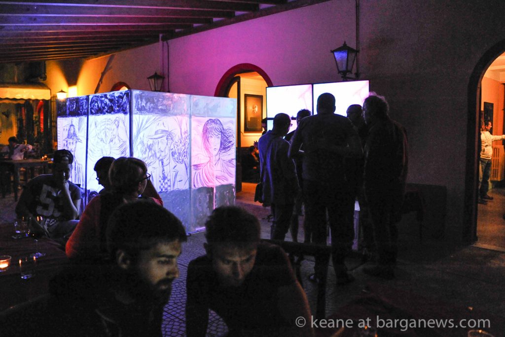 On the outside Nazareno Giusti was drawing scenes from his latest graphic novel, based on the life and work of Antonio Ligabue.