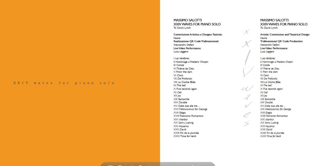 “XXIV WAVES FOR PIANO SOLO” is undoubtedly the most distinctive composition by Maestro Massimo Salotti, the pianist and composer from Lucca.