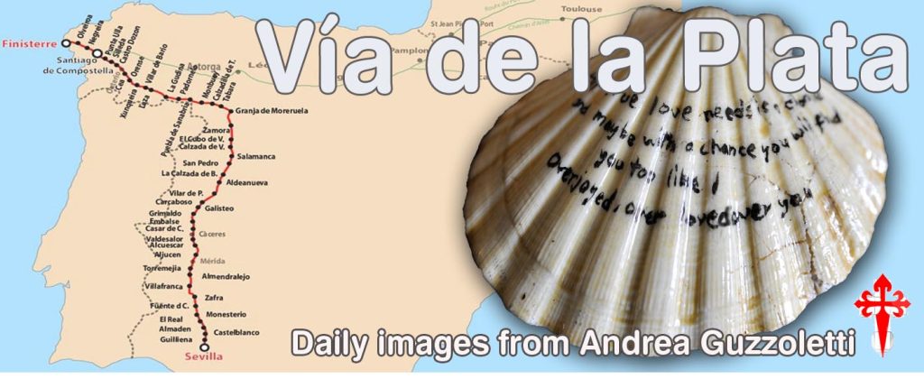 A year has passed, Andrea has left Barga and is on the road once again with his destination, just like last year – Santiago de Compostela and then on to the coast at Finisterre but this time he is taking a different route – The VÍA DE LA PLATA (Silver Way) or RUTA DE LA PLATA (Silver Route) which is an ancient commercial and pilgrimage path that crosses the west of Spain from Sevile in the South.