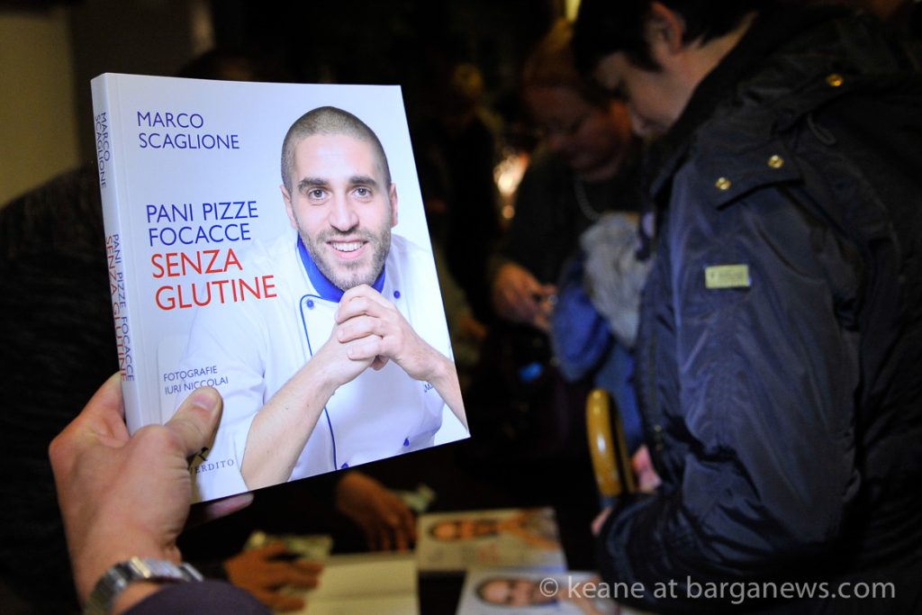 Marco Scaglione, the gluten free Chef was in Barga this afternoon demonstrating his prowess with gluten free cooking* at the Locanda dei Mezzo, the restaurant which opened up their doors in Piazza Annunziata for the first time this summer with Francesco Piacentini and Giulio Turriani at the helm (article here)