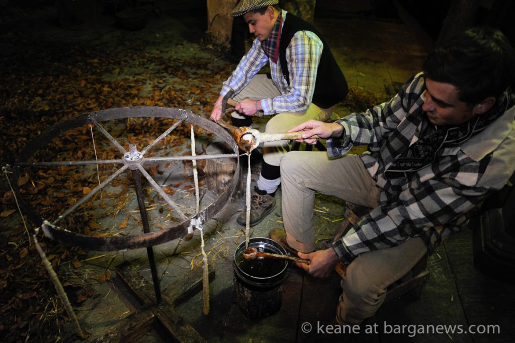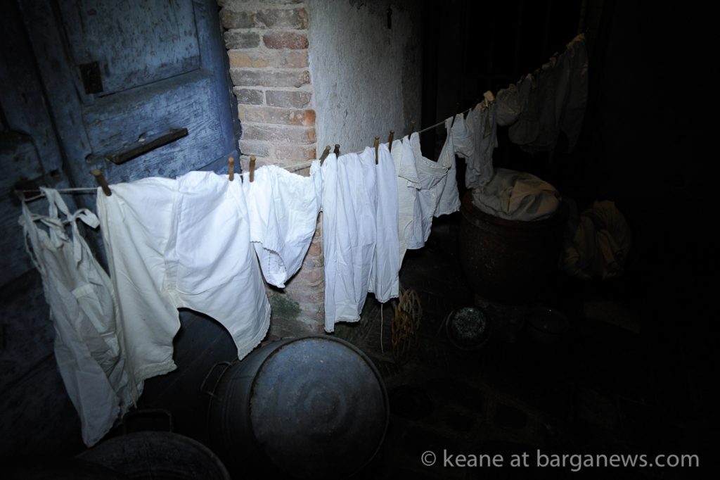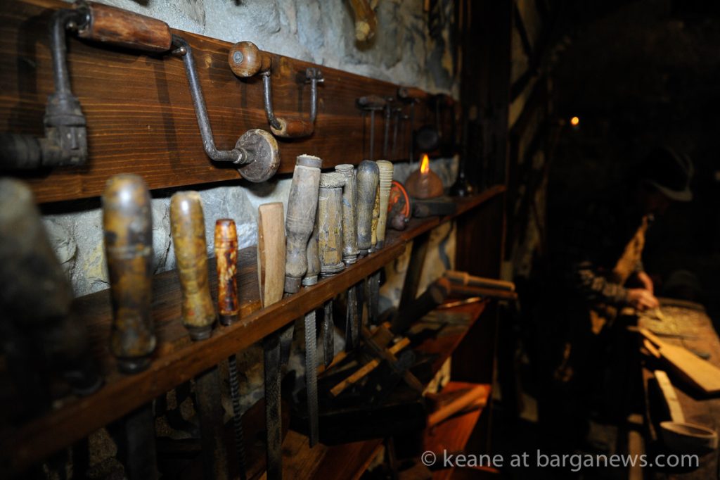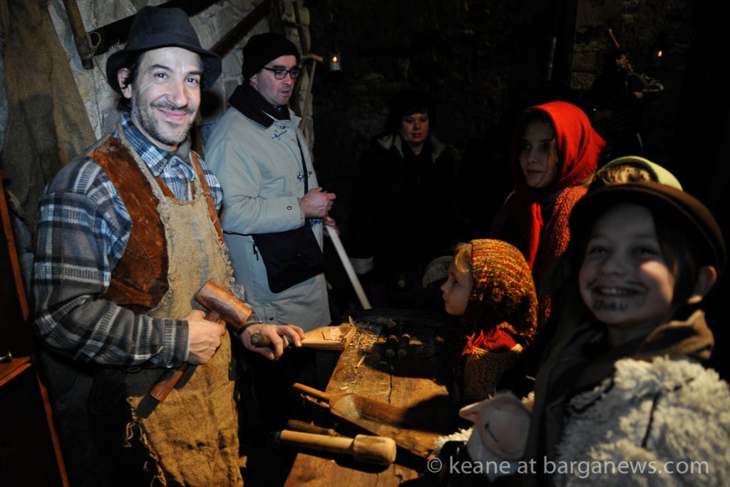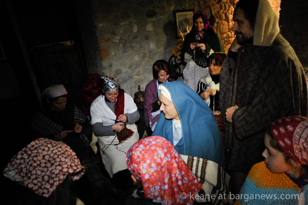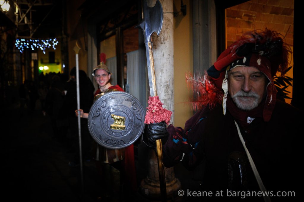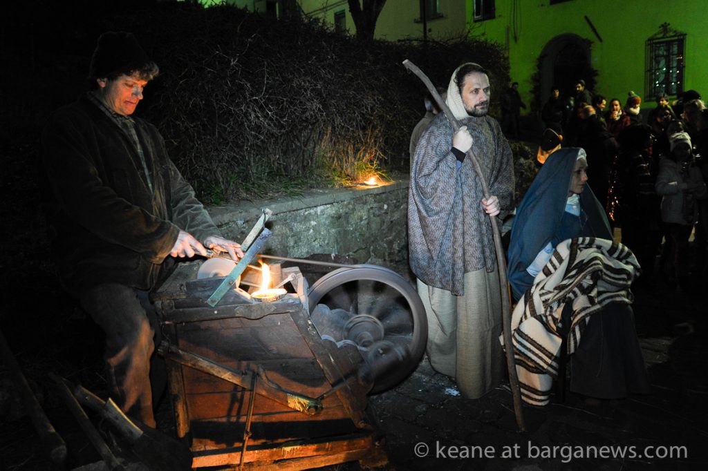 As they then make their way through Barga Vecchia, they stop and rest outside the cellars and cantinas of millers, stonemasons, people making sausages, carpenters, charcoal makers and cobblers all dressed in clothes from the turn of the 1900′s.