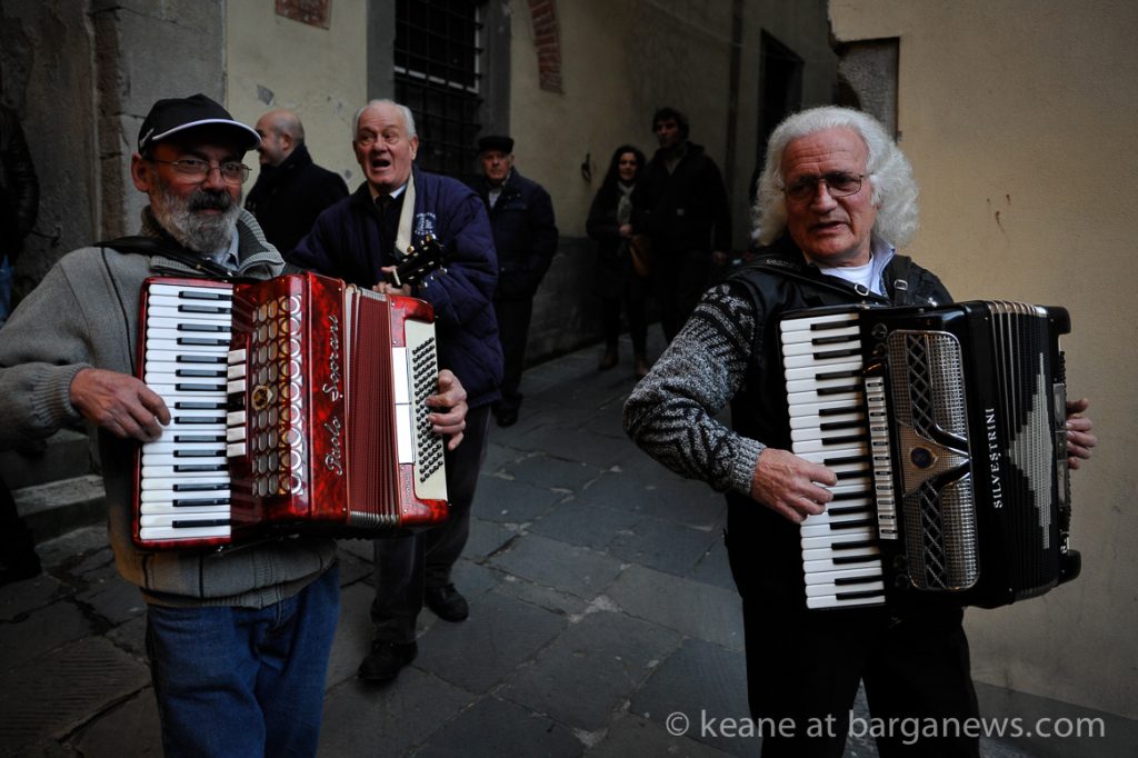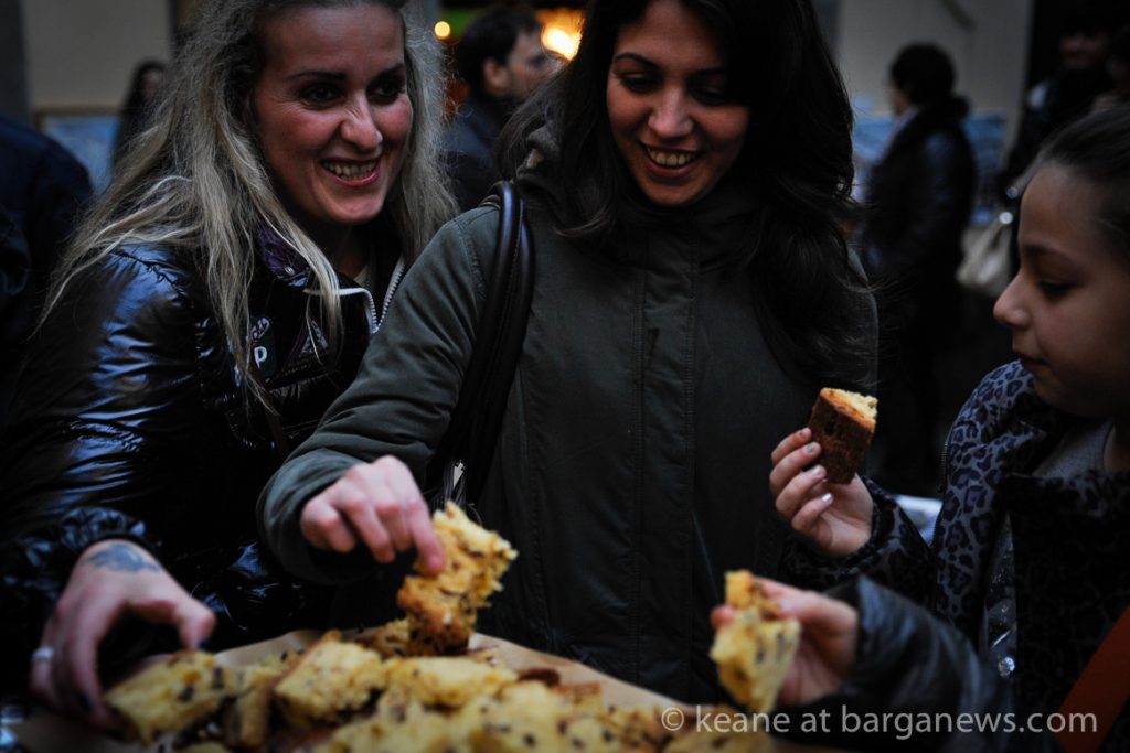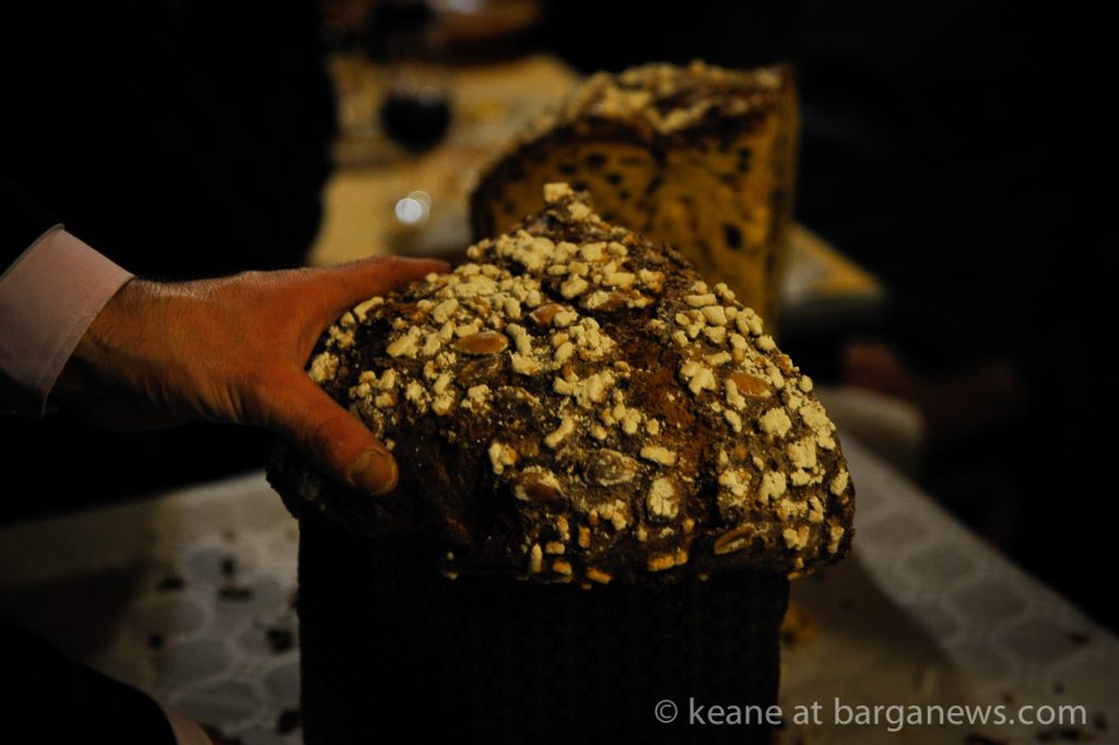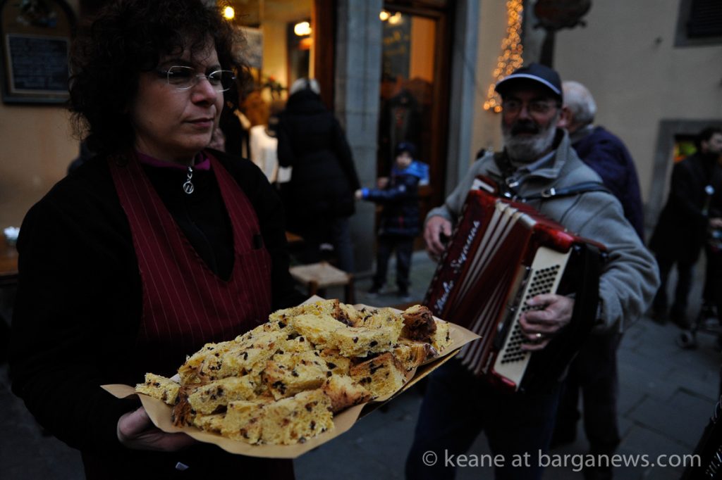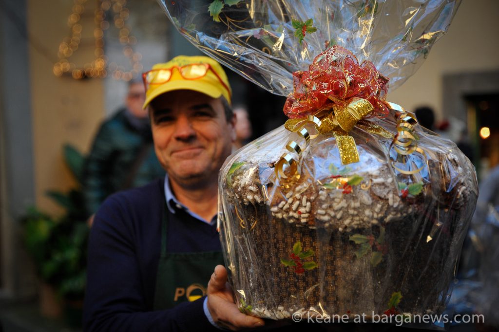 He was here in Barga this afternoon with his now famous Panettone and offering slices to the people in the piazza outside Da Aristo’s.