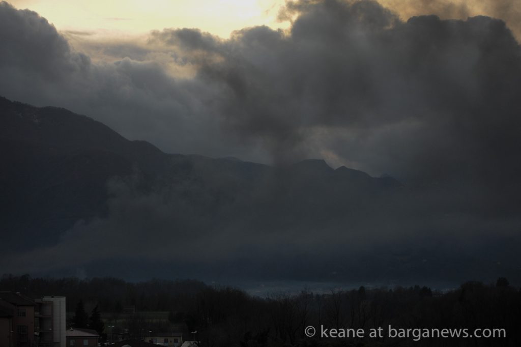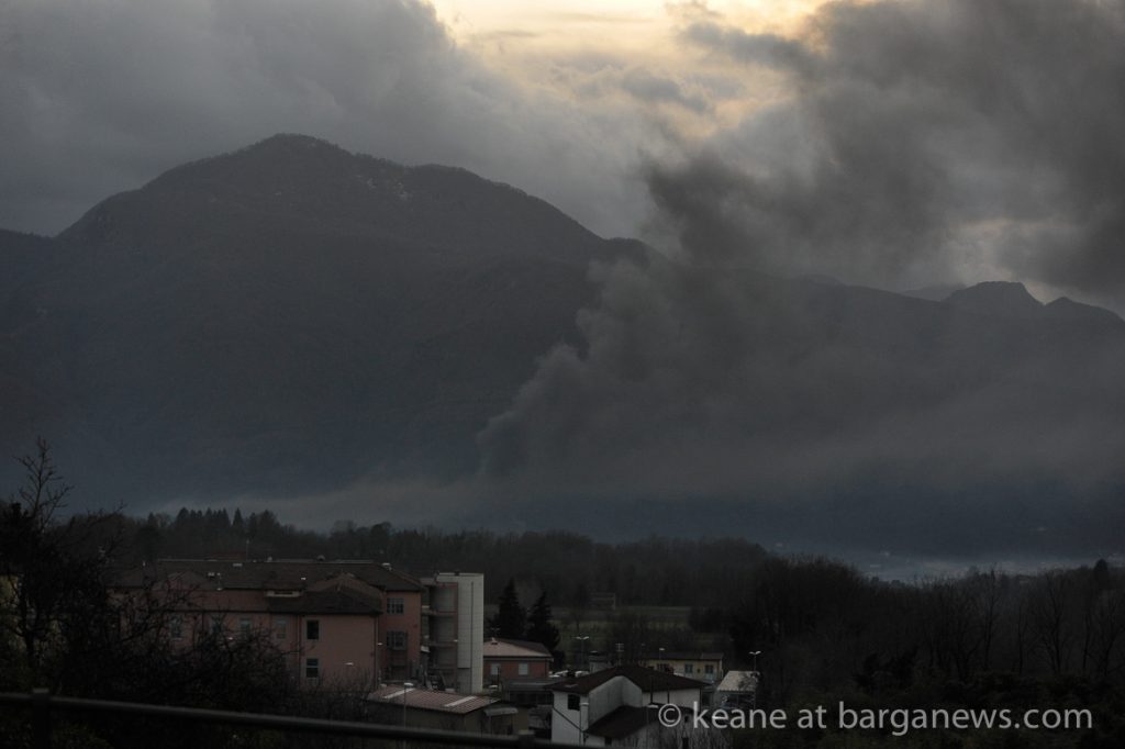 As the sun went down this evening and dark clouds moved across the valley, something less natural was added to the scene – a looming pall of black smoke which gradually spread across the whole valley coming from the direction of Gallicano.