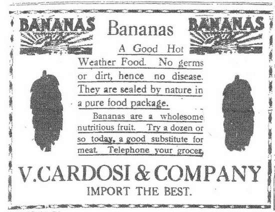 “Lima’s Banana King, Victor Cardosi, 611 W. Market St., is going to bid farewell to this El Dorado soon,” the Daily News wrote April 18, 1920. “He is making preparations to leave Lima the first of July on a journey to his native land, Italy.” Cardosi would take his wife and surviving daughters, Alvina, born in 1894, and four-and-a-half-year-Louise with him on the trip. Cardosi’s 23-year-old only son Edward would run the business in his father’s absence, the paper reported.