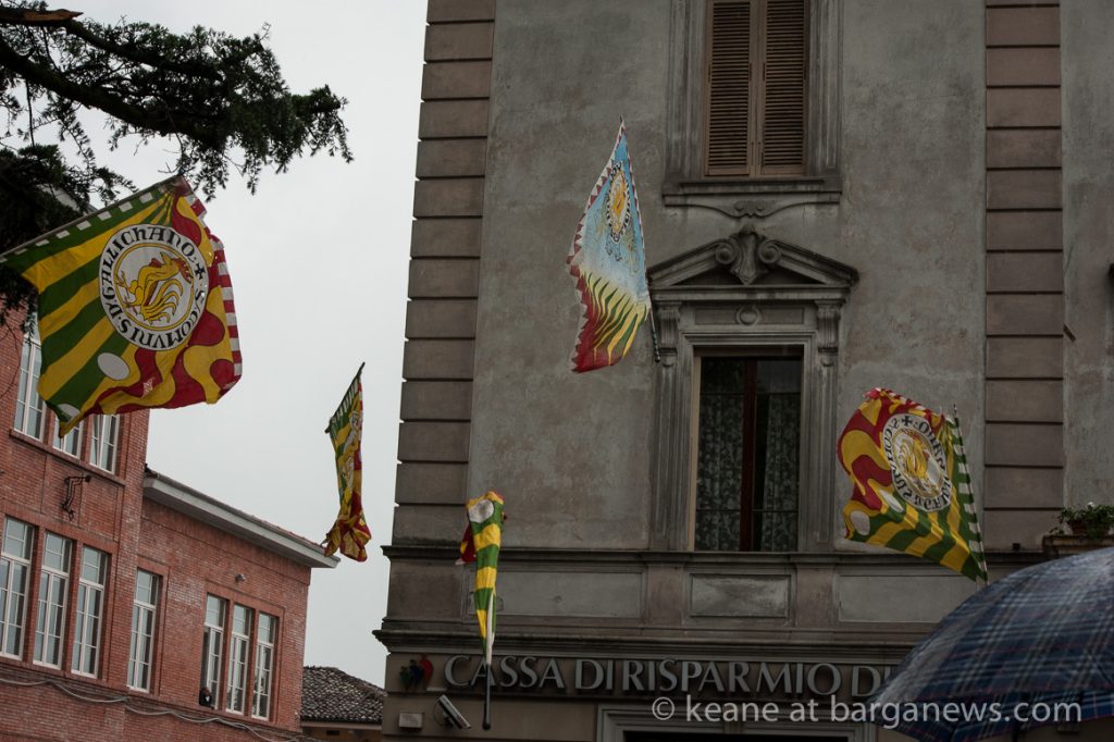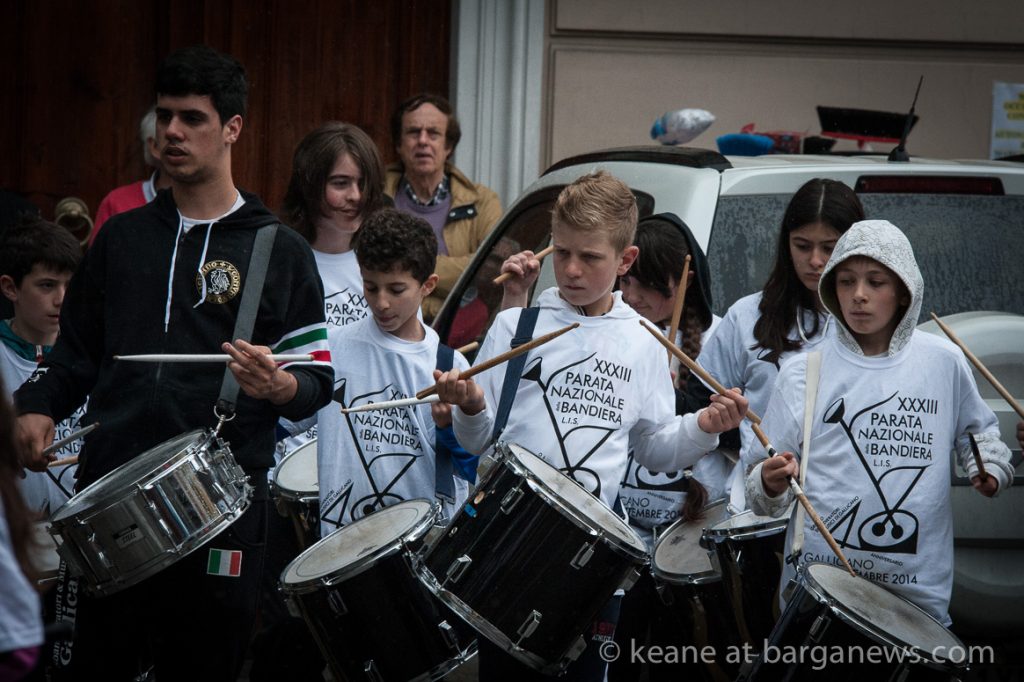 It may seem like a contradiction in terms but the phrase “tradition we make ourselves” comes to mind this morning as the week-long annual GVS Solidarity week came to a fitting and colourful climax this morning with a parade led by the drummers and flag throwers of the Gallicano Sbandieratori who marched from the Fosso down to Barga Giardino.