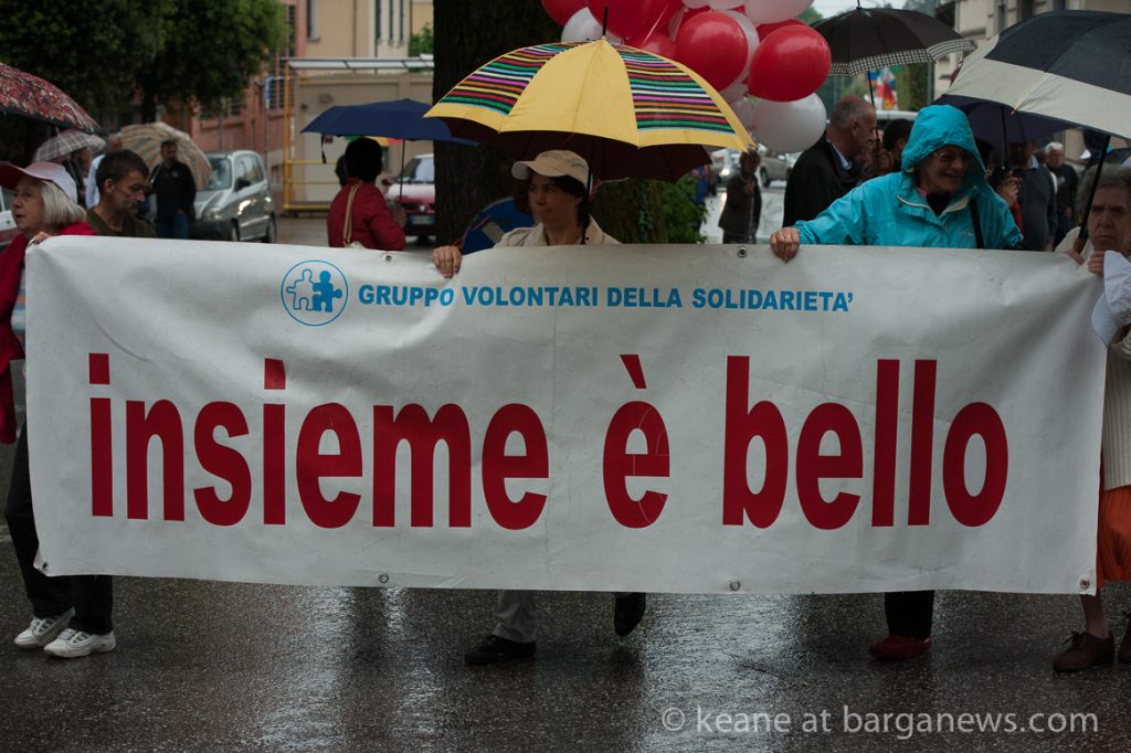 Unfortunately this year, the rain played a negative part in the celebrations as constant drizzle curtailed a good part of the events and instead of the “Friendship Games” usually played with gusto in Piazzale Matteotti, everybody moved indoors to the school and into the dry.