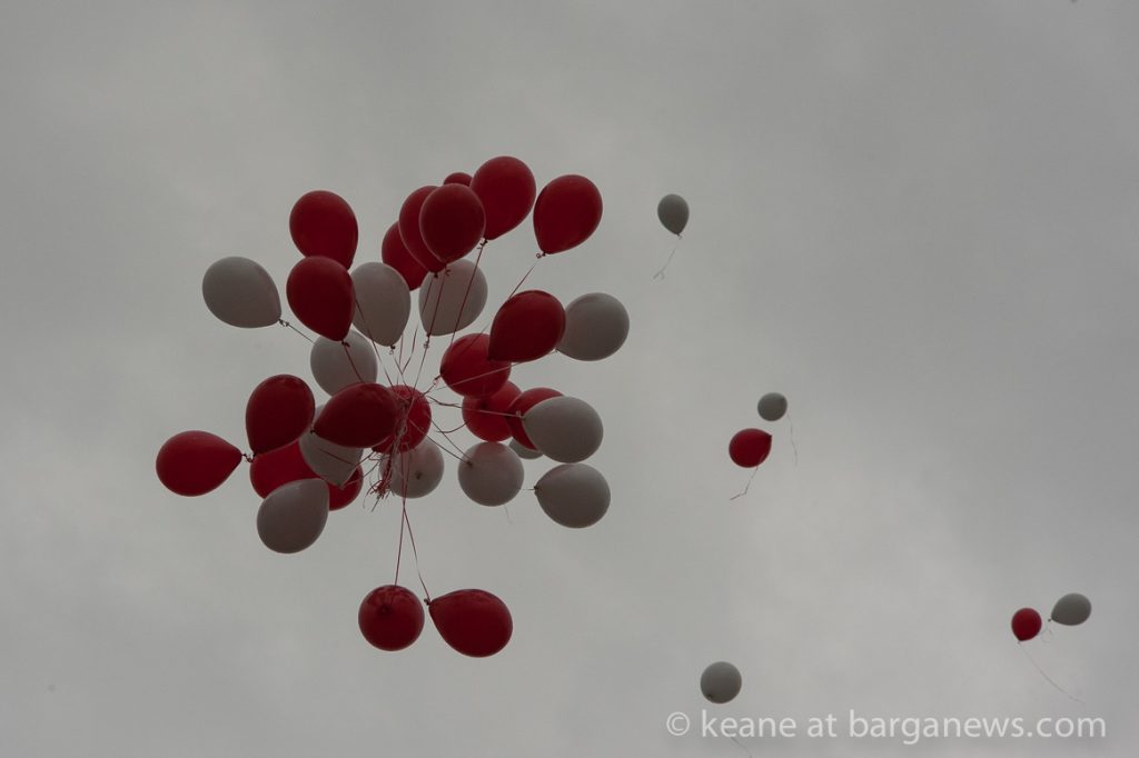 But before they entered the school, a message of friendship attached to some of the brightly coloured helium filled balloons was launched into the grey and miserable looking sky– maybe we are far enough away from the sea to not think about any dolphins choking on those balloons when they come down ?