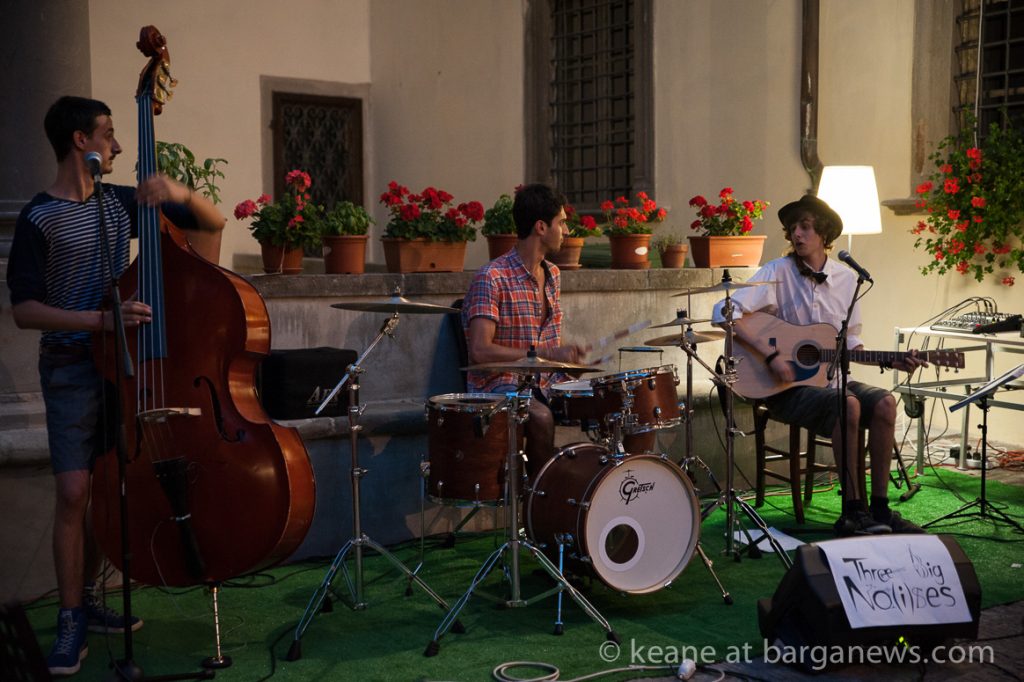 Il trio “Three Big No(i)ses”, nasce dall’incontro di tre giovani musicisti, studenti presso il liceo musicale di Lucca, la loro passione per la musica li porta a sperimentare e ritrovarsi in differenti esperienze musicali, suonando in varie formazioni. Da un anno assieme ad un gruppo di giovani danzatori portano avanti un lavoro di ricerca basato sul rapporto musica /danza privilegiando lo studio e l’approccio all’improvvisazione, guidati spesso da coreografi e musicisti con esperienza internazionale.