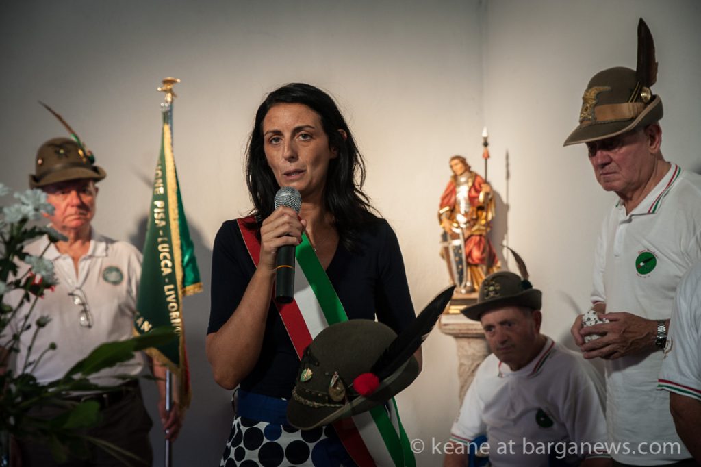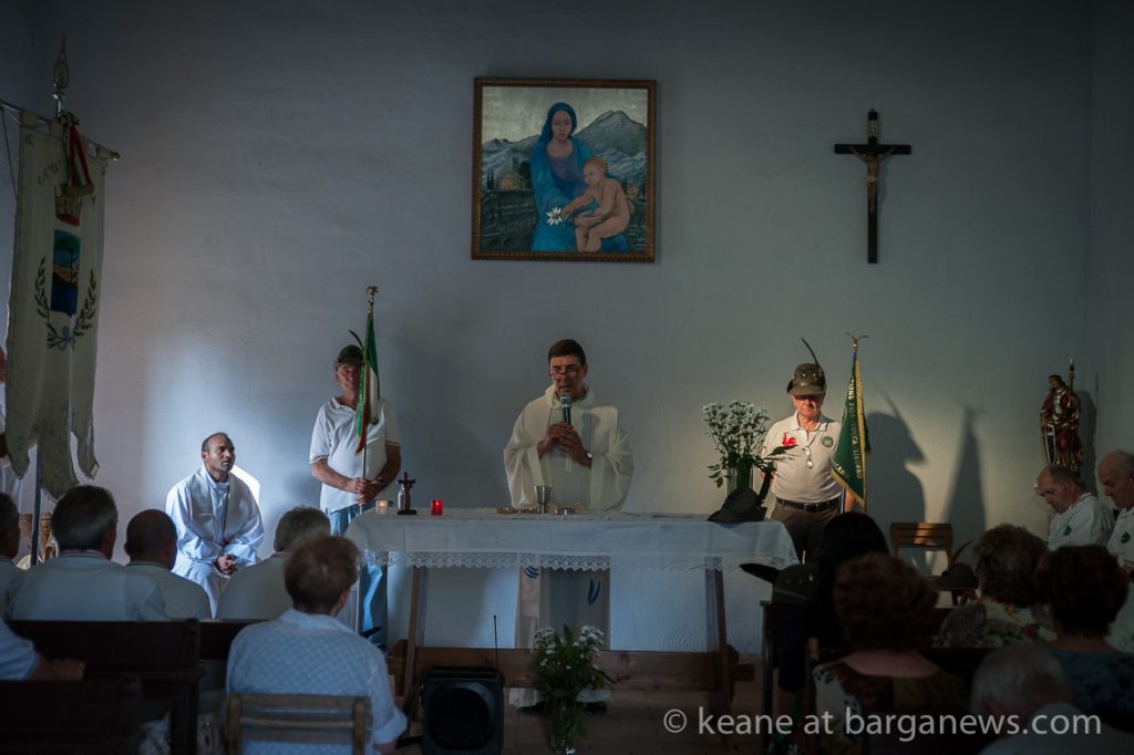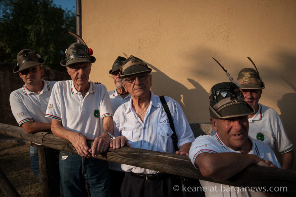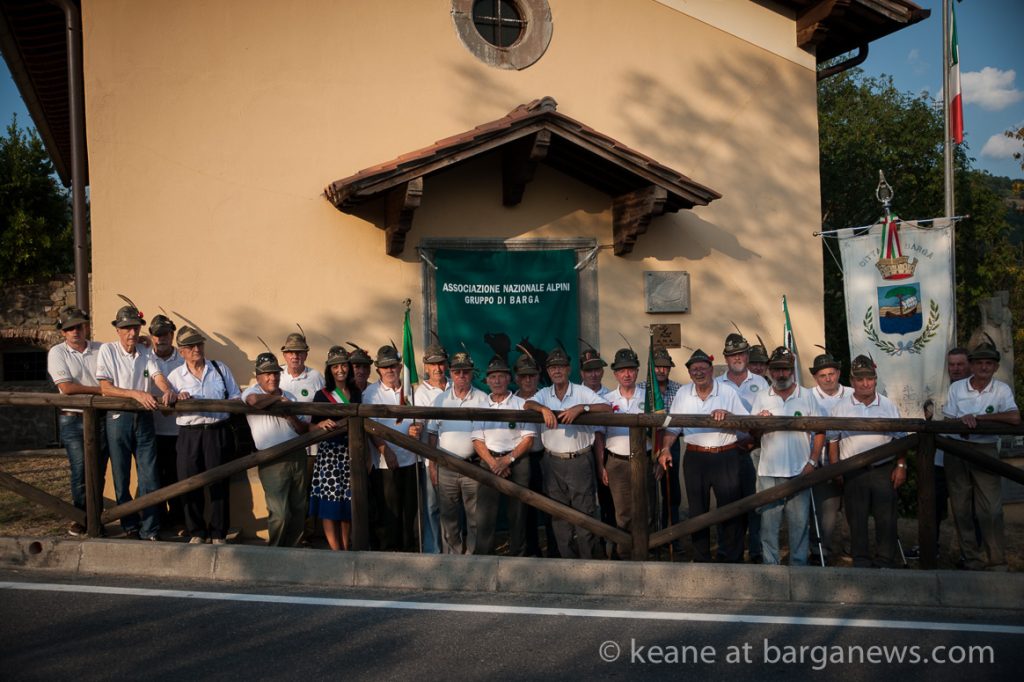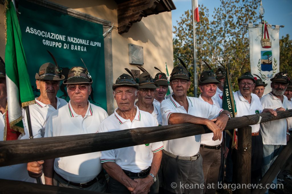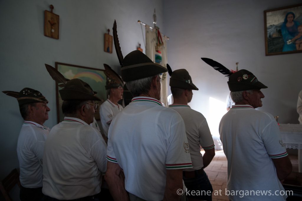 The Alpini were out in force this afternoon at the SS.Madonna della Neve, the Chiesina degli Alpini at Palmente on the road to Loppia just outside Barga. The chiesina used to be a sorry ruin but has been restored over the past few years and is now once more being used by the community.