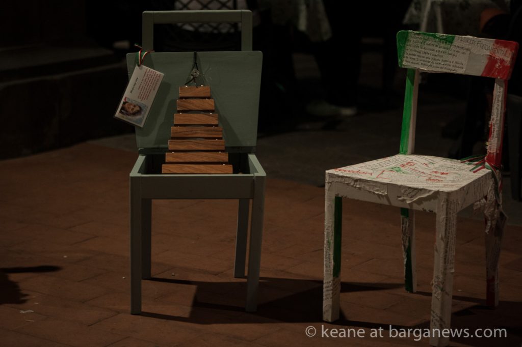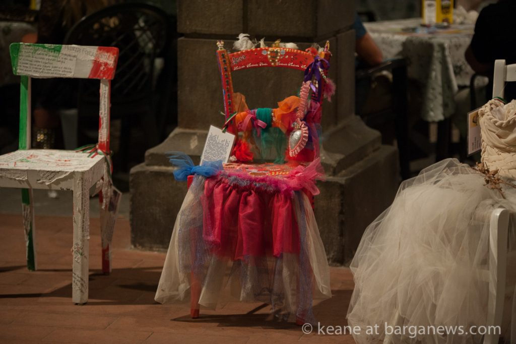 On Saturday 22nd August in Castelnuovo a selection of chairs by women artists will be displayed under the arcade during the La Notte Rosa . Coordinated by Antonella Piacentini