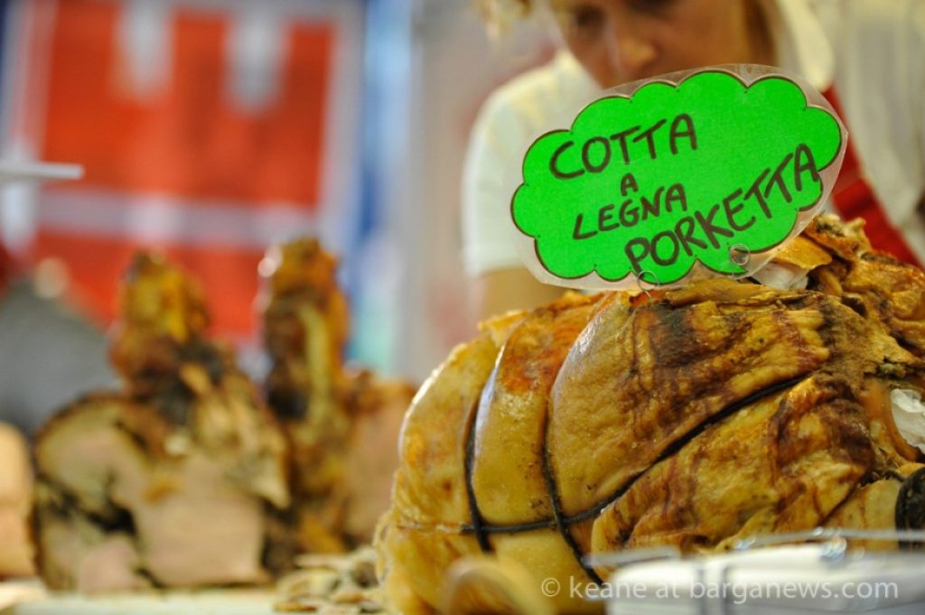 One of the attractions is the street market with hundreds of stalls lining the streets of Barga selling everything from the traditional San Rocco goods such as melons, onions, garlic, sweets, pots and pans to the more exotic articles such as small green iguanas, African drums, silk kimonos and Chinese medicines.