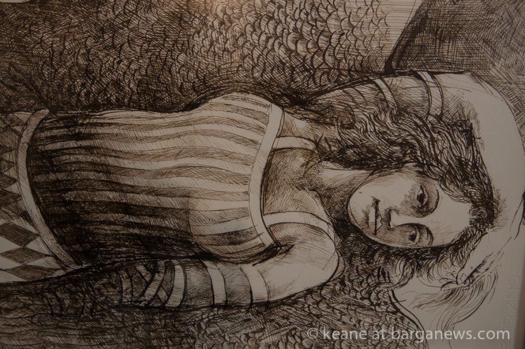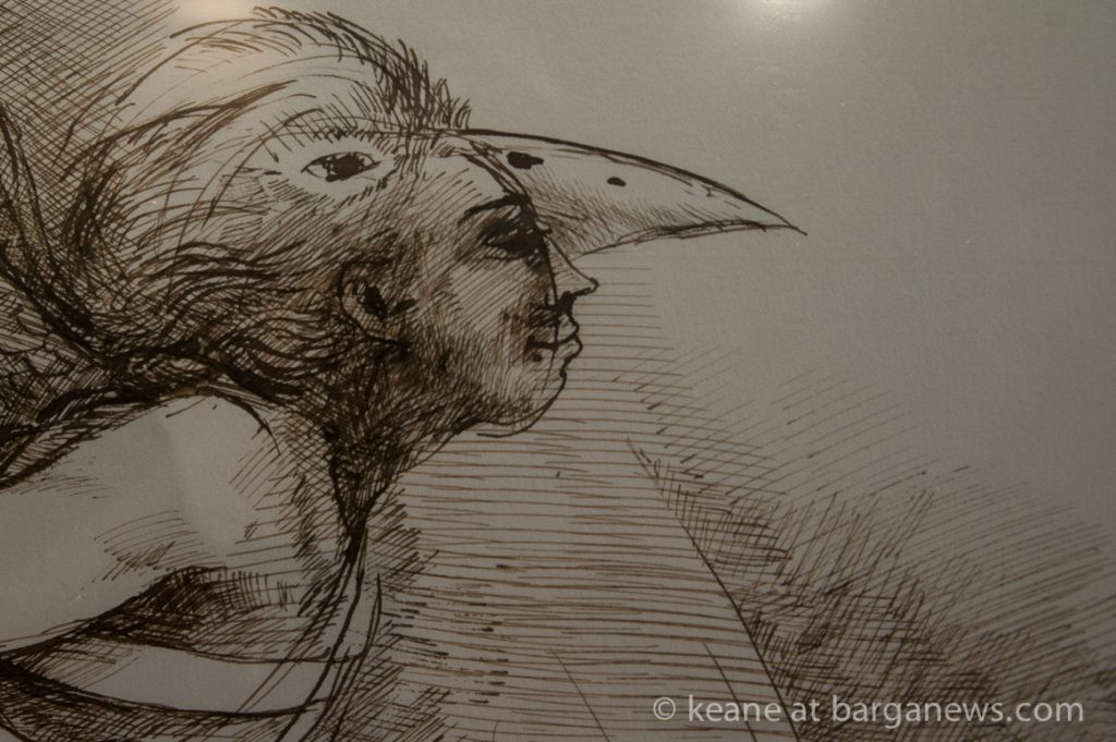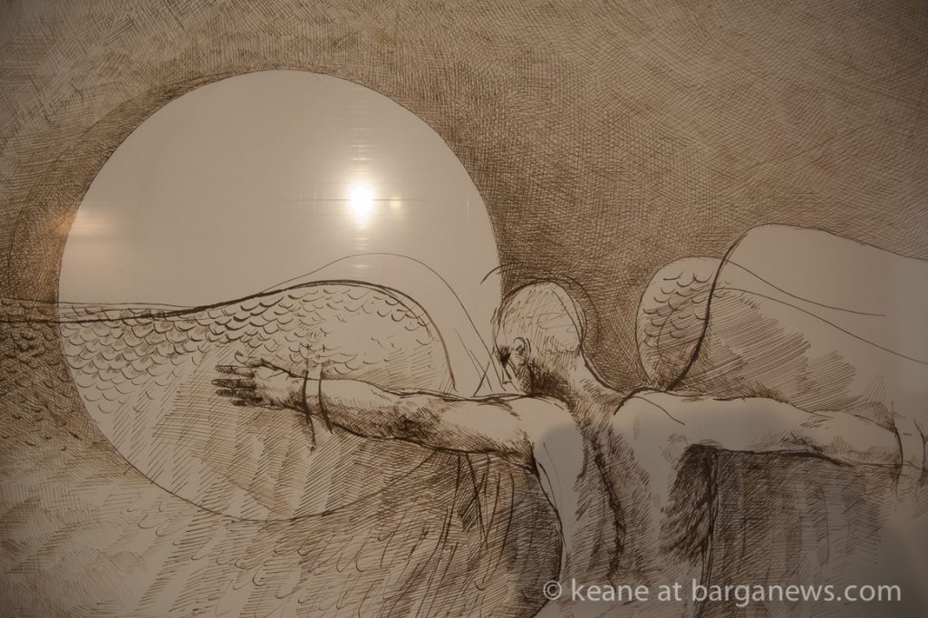 One night in mid October of last year I had a very vivid dream that I was doing a large sepia pen and ink drawing of Icarus flying again. The next day and the days that followed that dream became persistent and finally motivated me to return to a technique I hadn’t used for several decades – Swietlan Kraczyna