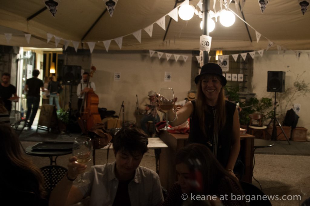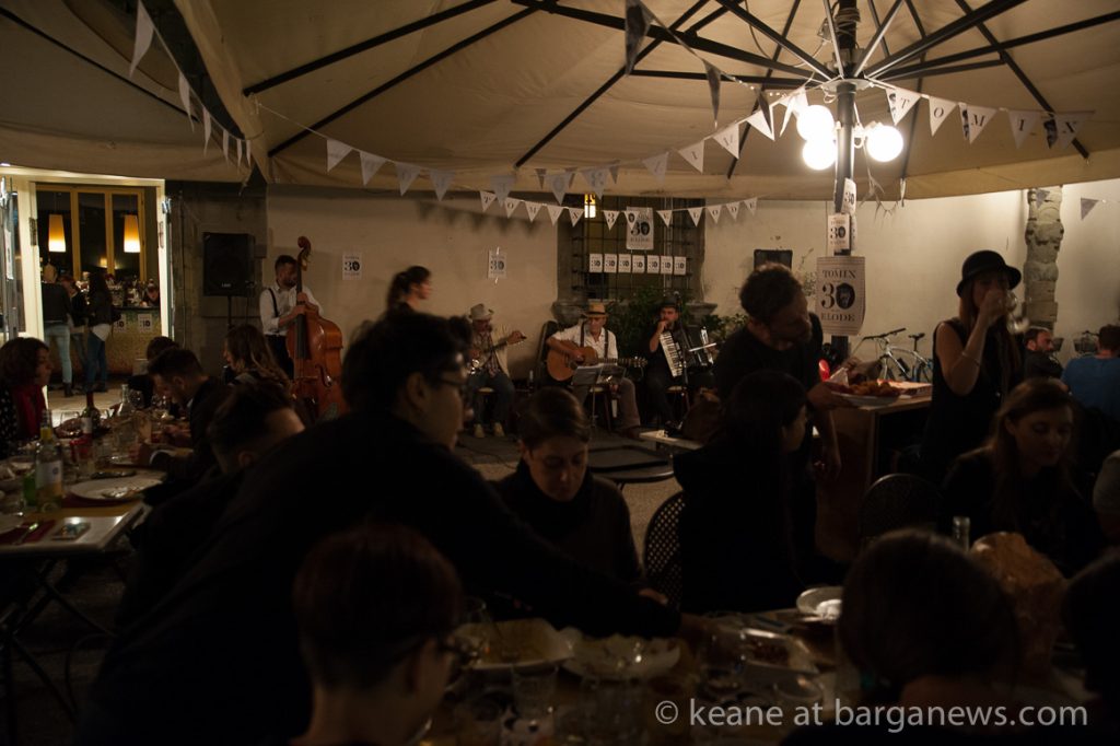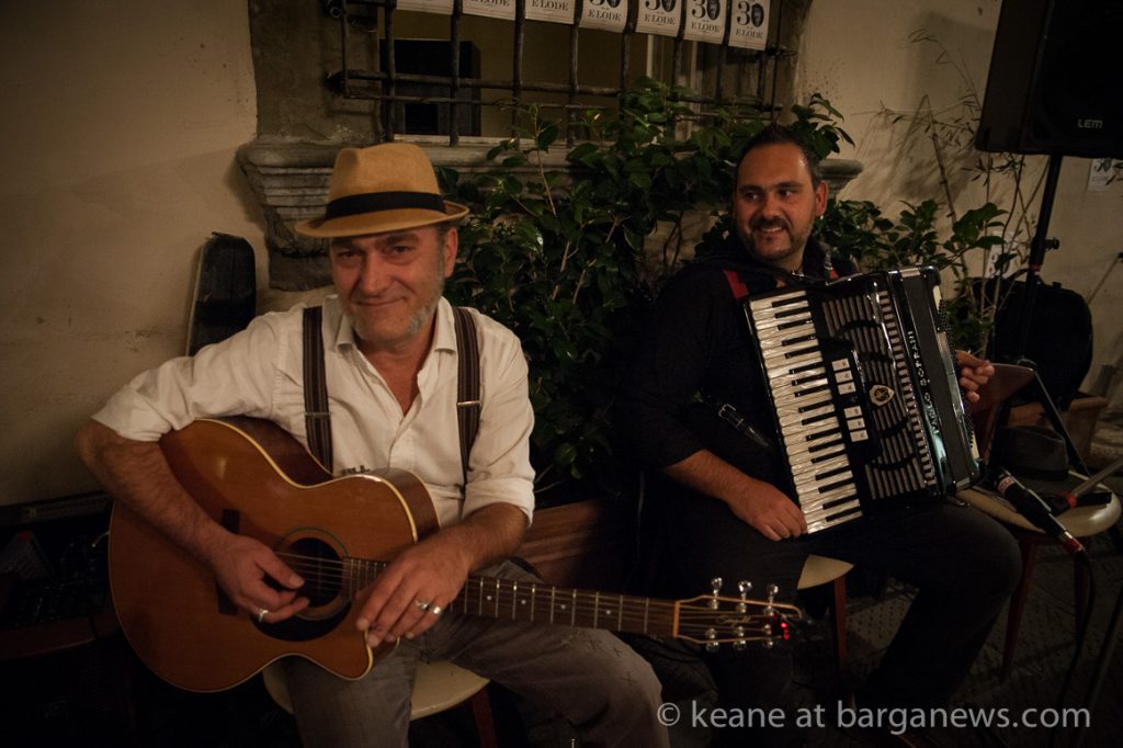 They were at the Undici Undici bistrot which faces on to the Duomo of Lucca – the cathedral San Martino celebrating a birthday party with their original take on Italian swing, good food, select wines and an enthusiastic audience who were unable to keep still in their seats.