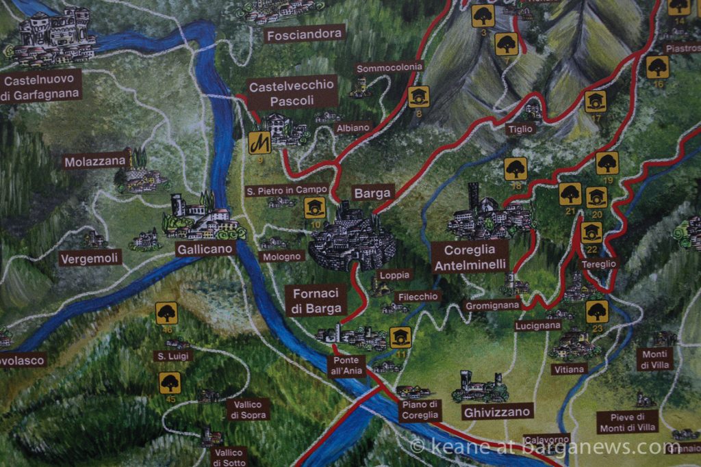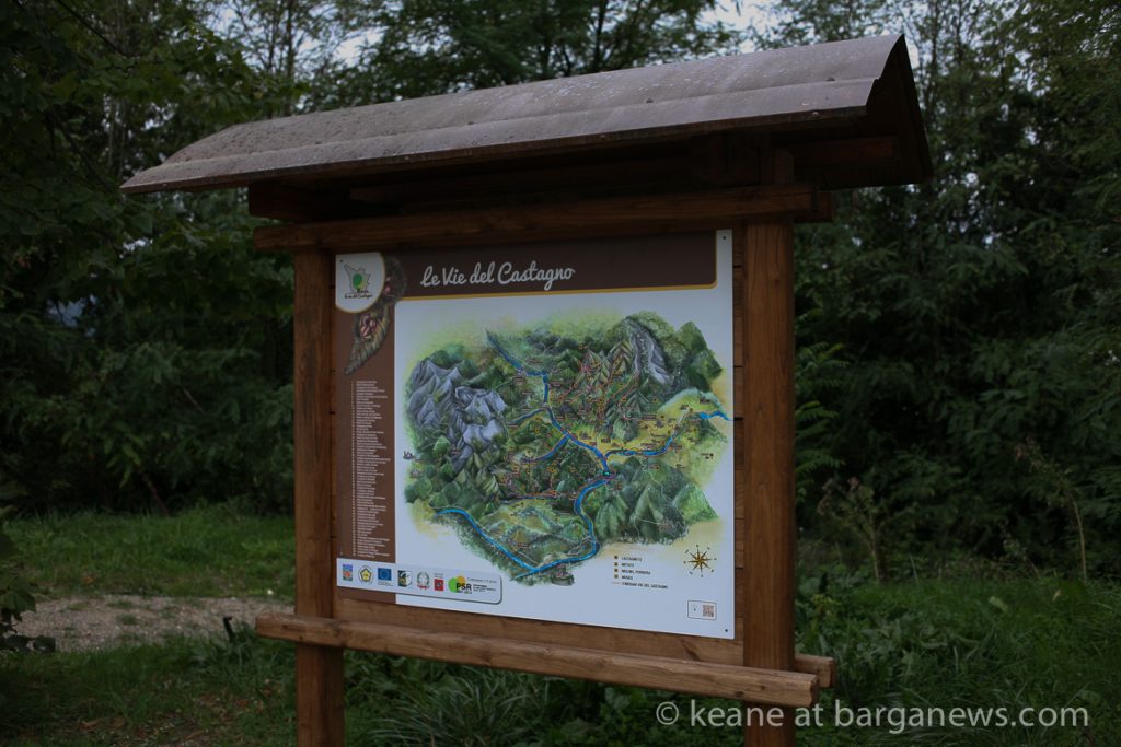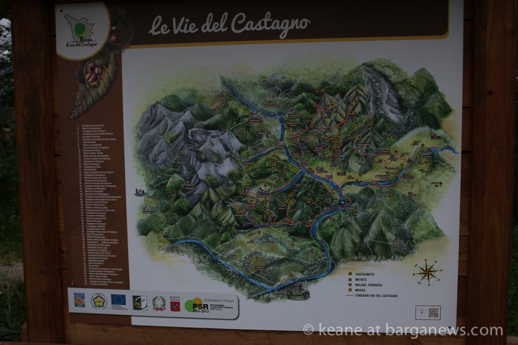 Something in Barga which almost flew under the radar this summer is finally making itself noticed – a series of a maps set up in various places around the area featuring chestnuts and a QR code which takes people via their cell phones to a website and an application on IOS and ANDROID
