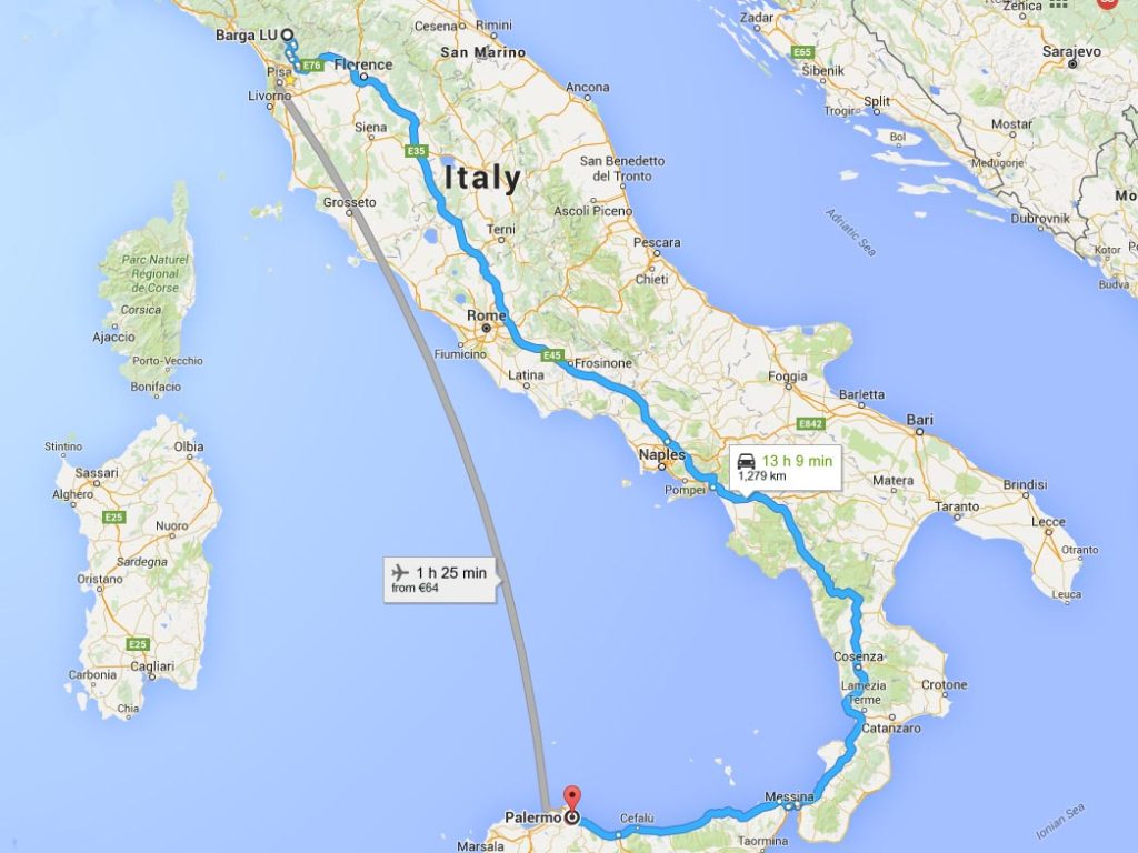 Nineteen hours later they were back in Barga after a round trip of a few thousand kilometres after boarding a flight at Pisa and for a few brief hours enjoying all the culinary delights that Palermo in Sicily could offer before once again boarding a flight back up the country to Pisa and then onto Barga.