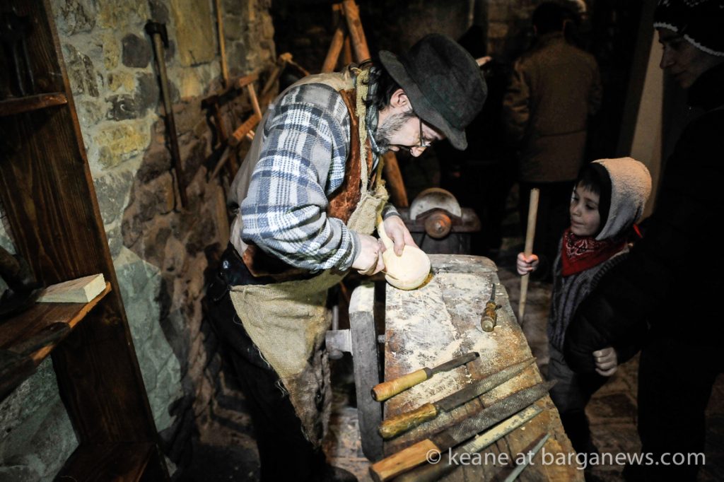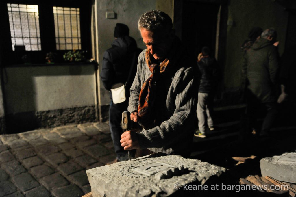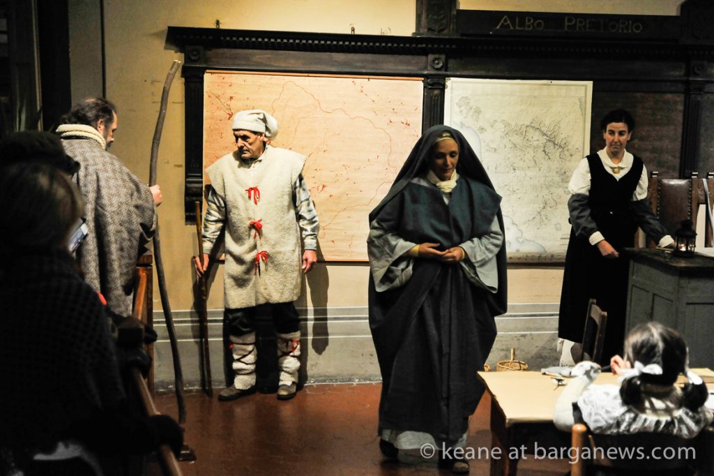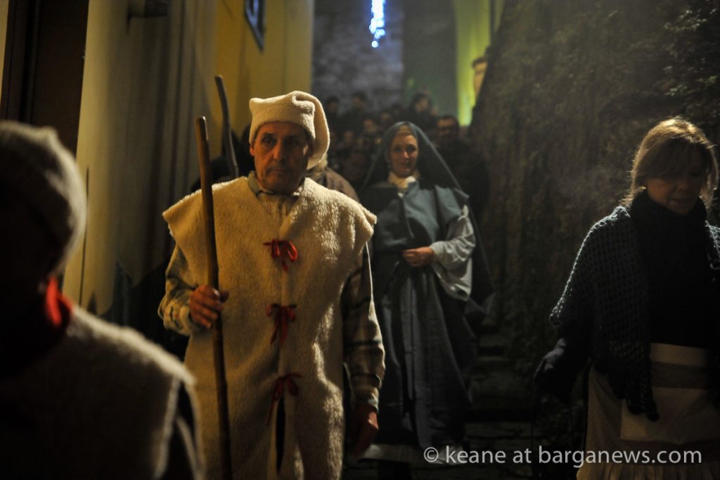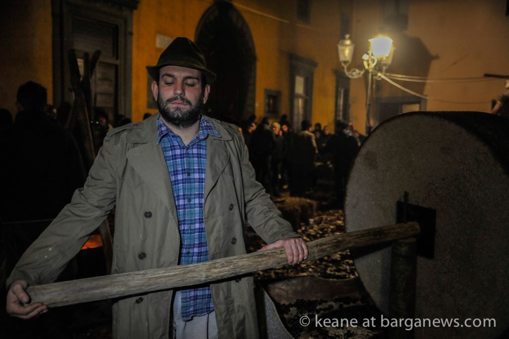 As they then make their way through Barga Vecchia, they stop and rest outside the cellars and cantinas of millers, stonemasons, people making sausages, carpenters, charcoal makers and cobblers all dressed in clothes from the turn of the 1900′s.