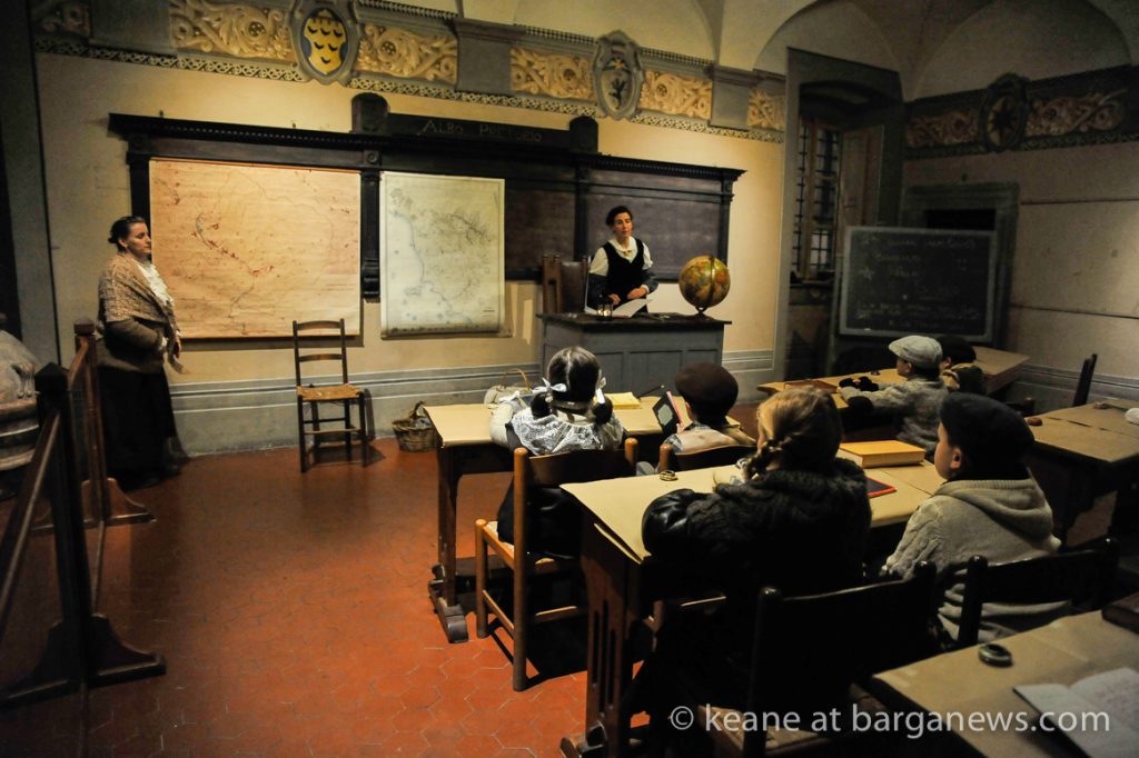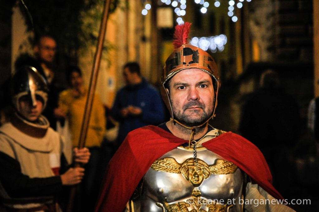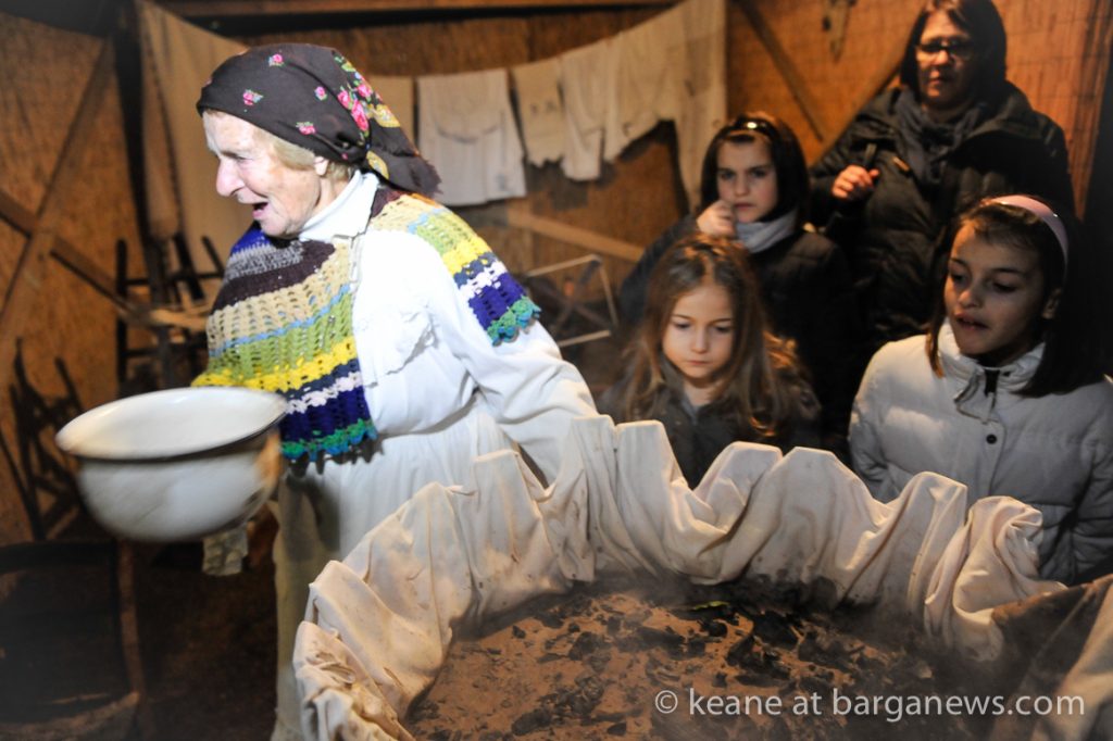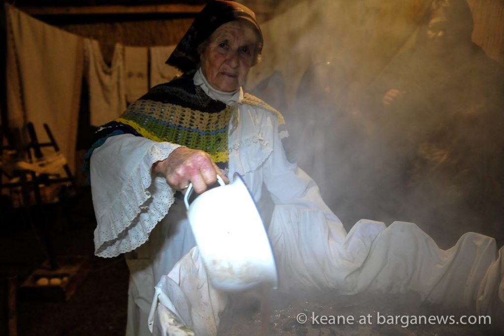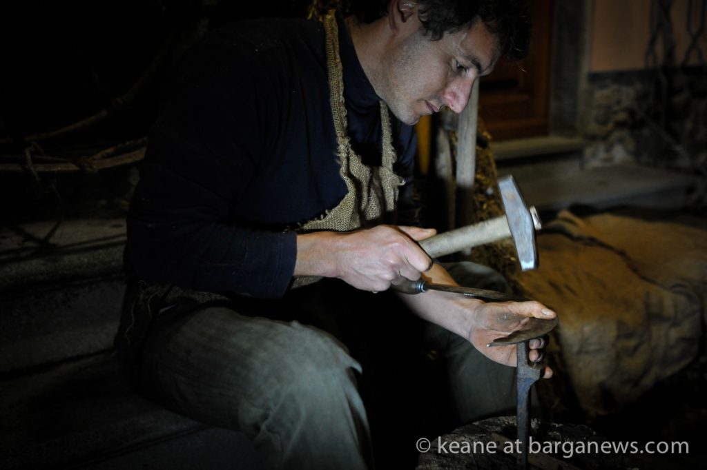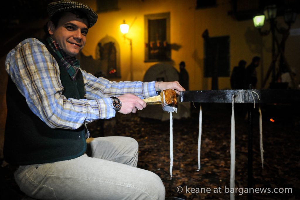As they then make their way through Barga Vecchia, they stop and rest outside the cellars and cantinas of millers, stonemasons, people making sausages, carpenters, charcoal makers and cobblers all dressed in clothes from the turn of the 1900′s.