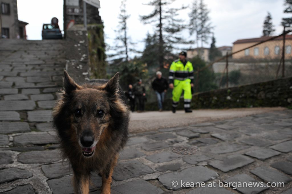 Leila the specially trained sniffer dog was in Barga this afternoon with her handler Flavio Fazzi busily searching through parts of Barga Vecchia for any traces of poisoned food left out by person or person unknown. They were here as part of the Vega Soccorso organisation based in Viareggio and were invited by the Associazione Onlus per la difesa degli animali – L’Arca della Valle in an attempt to get some answers to just what has been happening here in the city of the past few weeks.