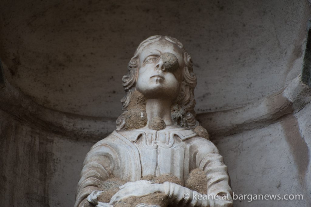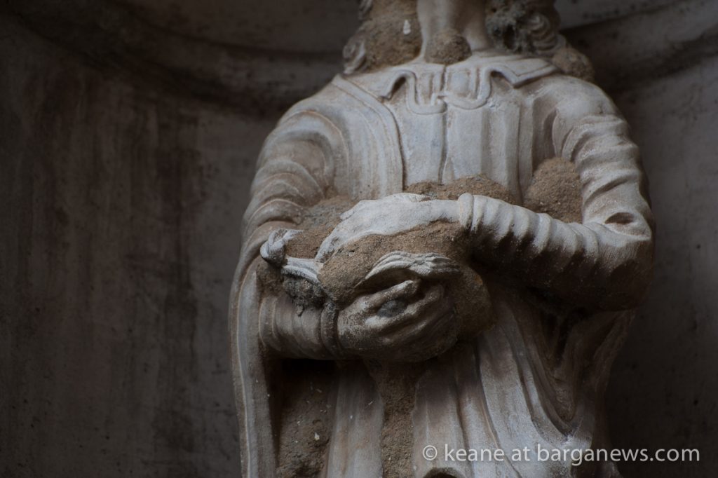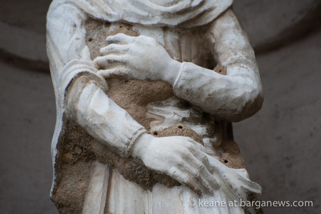 These industrious wasps collect mud to build their nests, typically securing them on hard, sheltered surfaces. While rocky outcrops suit this need in the wild, buildings can be even more attractive and for some reason, marble statues which provide the substrate and protection they require are the prefered site here in the city.
