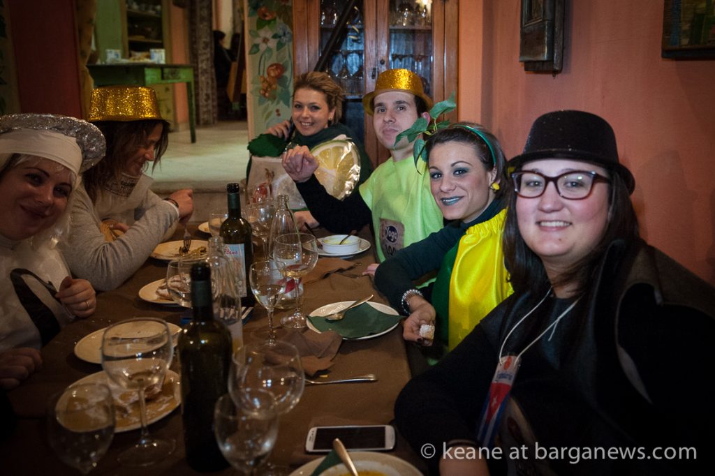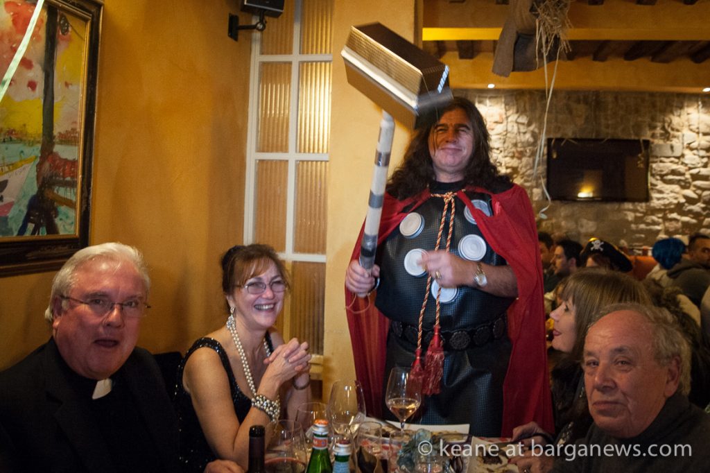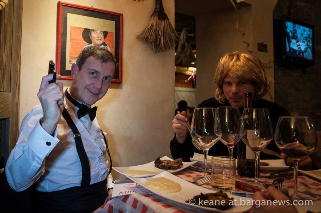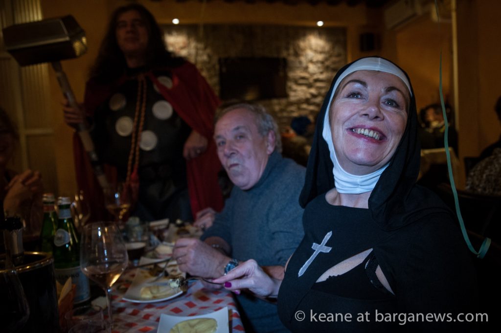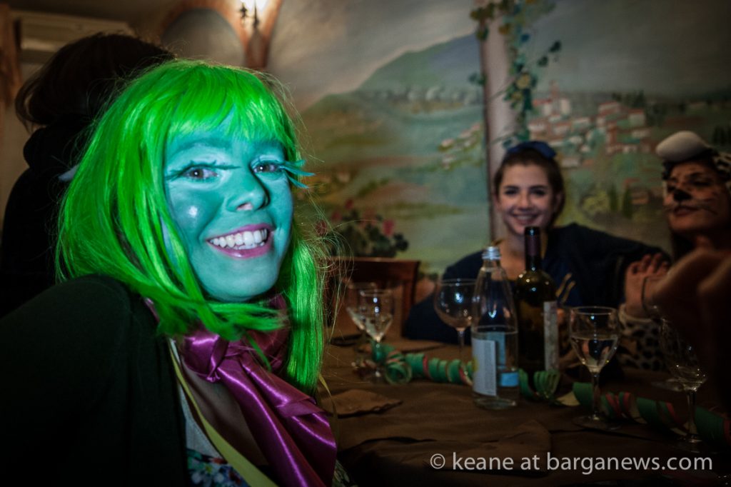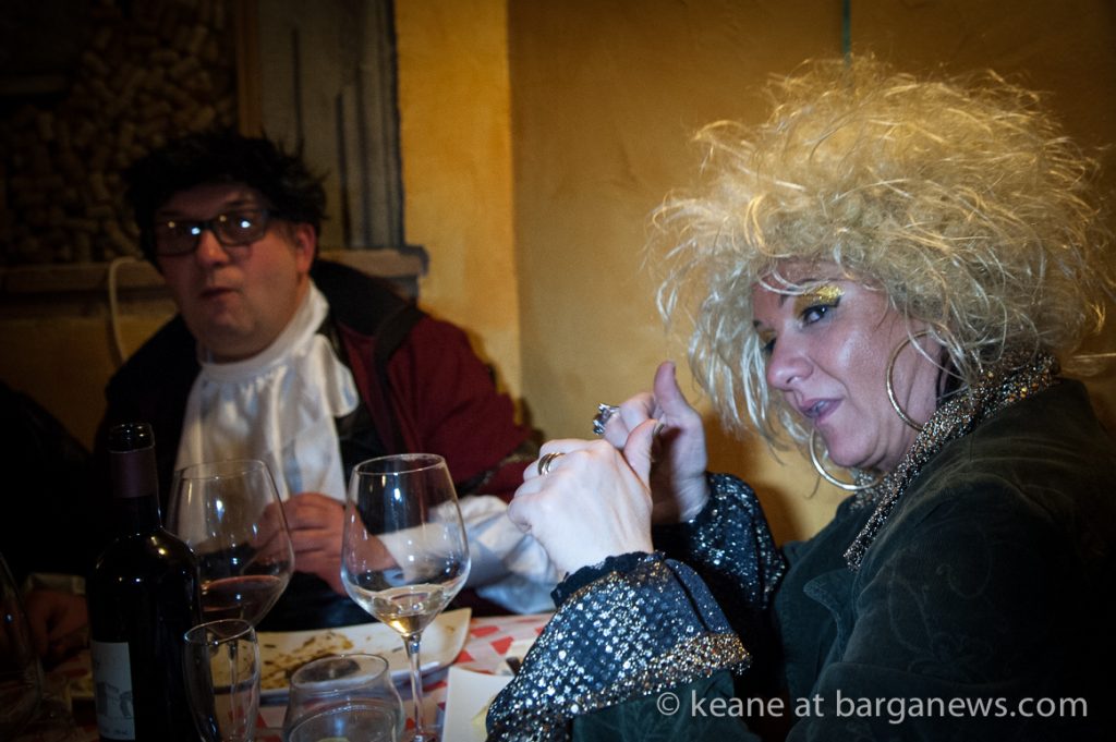 The restaurants in Barga Vecchia were all completely full, many of the clients in costume and as midnight gradually arrived they all filter out into the night to wend their way towards the large tent set up on the Fosso.