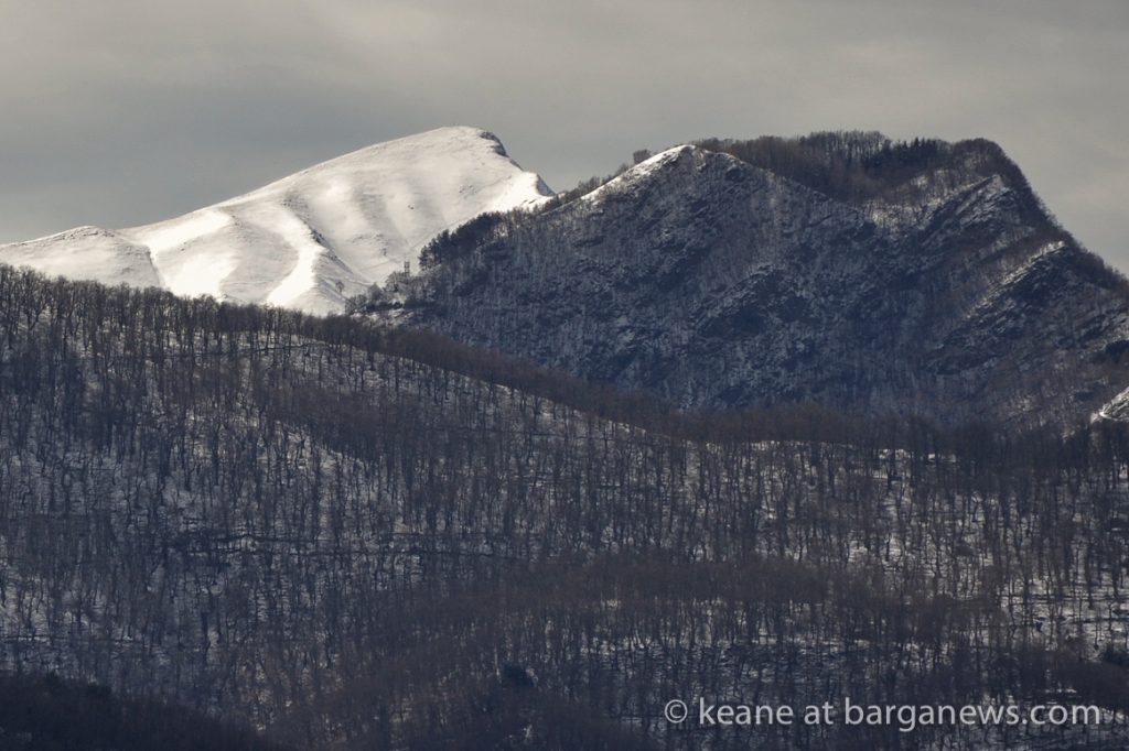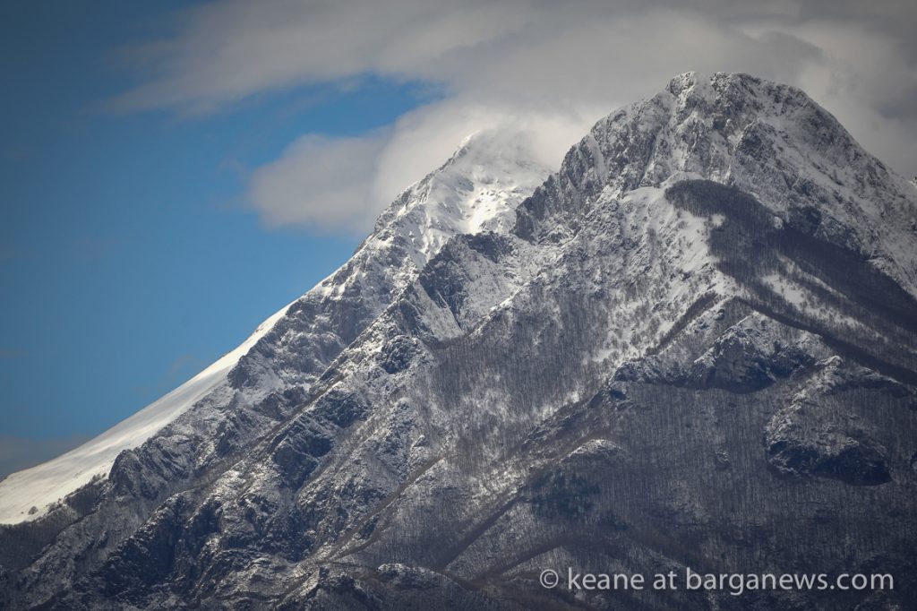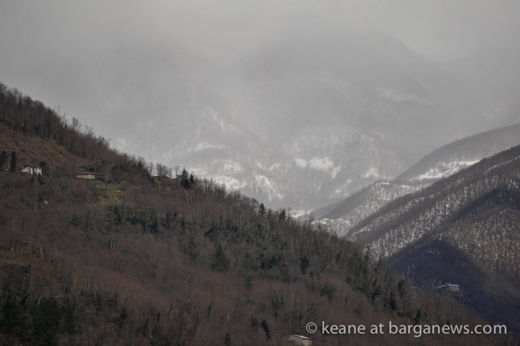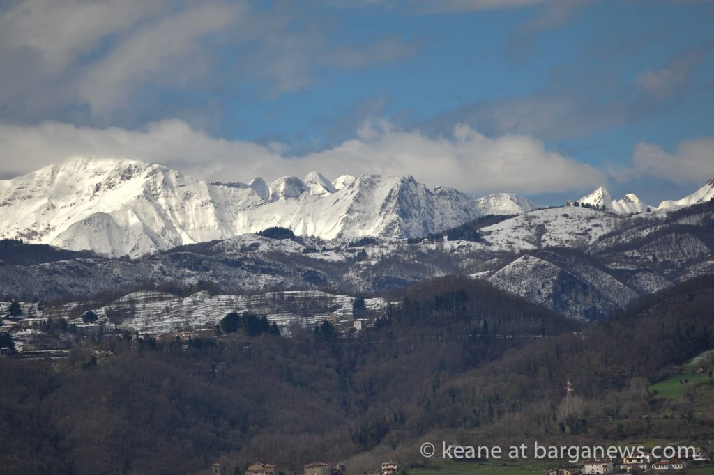 The main snow fall was yesterday (article here) but during the night up on the mountains surrounding Barga more settled and today the panoramic view from the Duomo was showing some dramatic scenes for those who could face the sharp wind cutting across the valley.