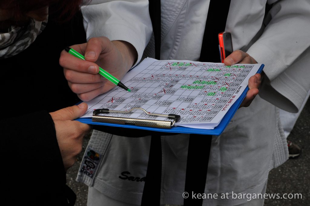 The encroaching dark clouds and threat of imminent rain made the whole affair a somewhat rushed event as more than 70 karate experts of all levels young and not so young lined up for their photograph.