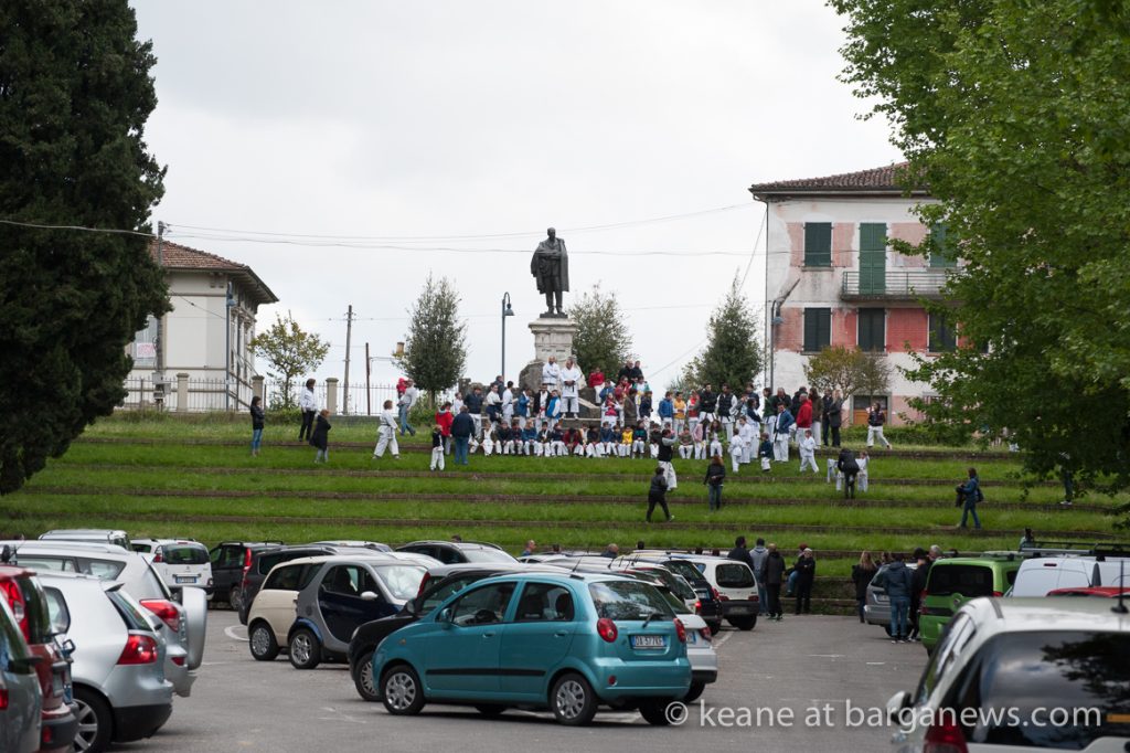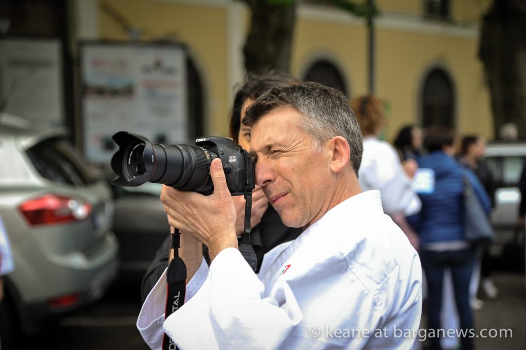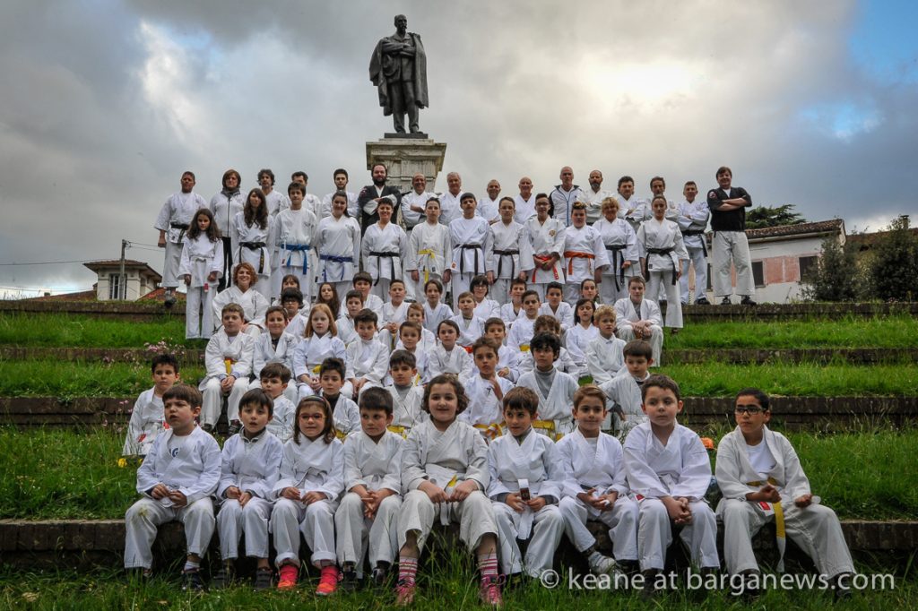 Members of the Goshin-Do Karate club of Barga were assembled on the Fosso just outside Barga Vecchio this evening for a photoshoot under the statue of Antonio Mordini.