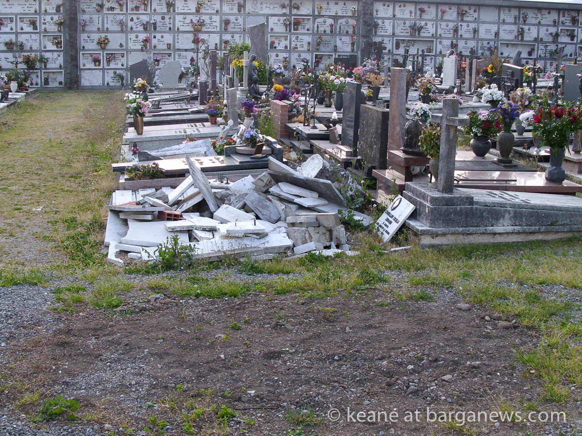 Oltre alle tombe distrutte dalla tempesta di vento dello scorso anno, ci sono zone transennate lasciate li senza essere riguardate e sopratutto ora con l’arrivo della bella stagione, l’erba intorno alle tombe è cresciuta a dismisura, non diciamo delle piante trasferite dai giardini delle ex scuole elementari, ormai seccate.