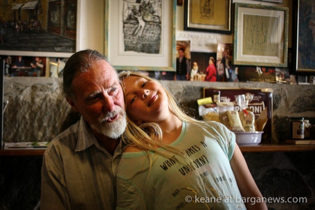 His daughter, Ellen was here in the city taking part in searching for the elusive cultural geocache boxes hidden around the area (article here) – Ian instead positioned himself at the unofficial cultural centre of Barga – the Da Aristos bar and using one the guitars hanging up on the wall, kept the clients entertained with a series of lively songs and stories interspersed with his wry sense of observational humour.