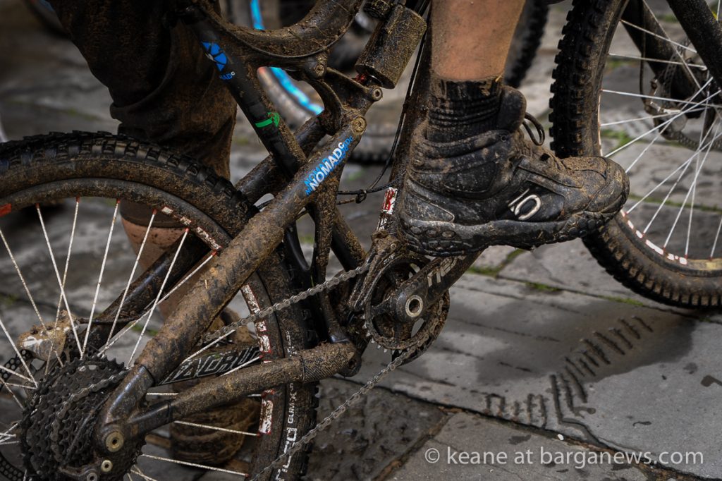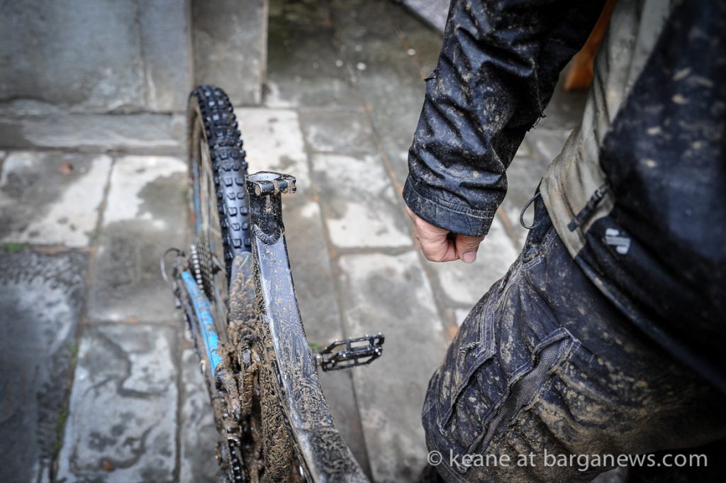 As can be seen from the images above there was no shortage of damp wetness and clinging mud but also the sharp eyed might notice another shortage — one of the riders was missing their saddle … now that is some serious hardcore riding … but he was still smiling 🙂