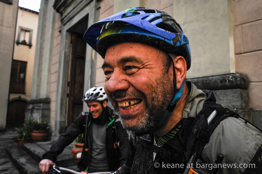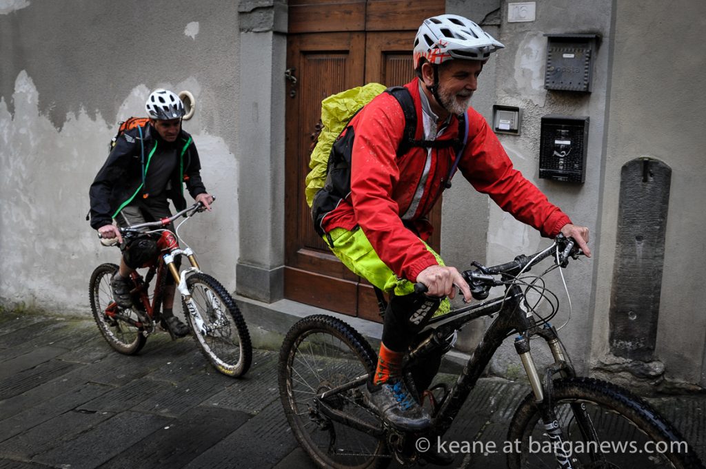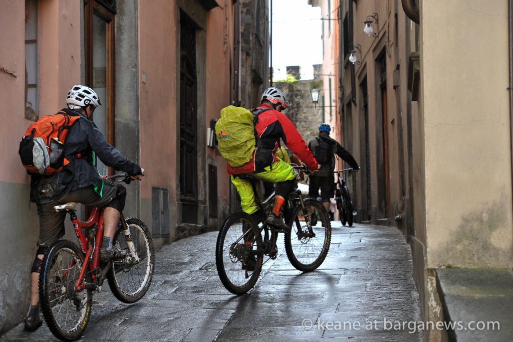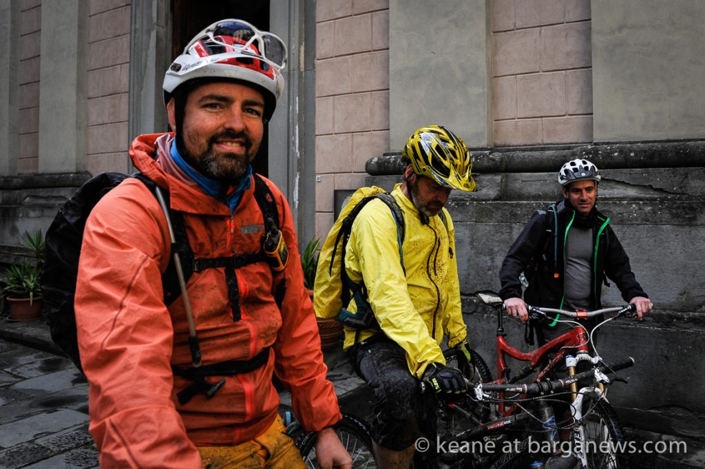 The recent wet weather has stopped many people from visiting Barga but this afternoon a small group of sportsmen were in evidence in Barga Vecchia who were obviously not bothered one inch by the rain (or the mud in that case)