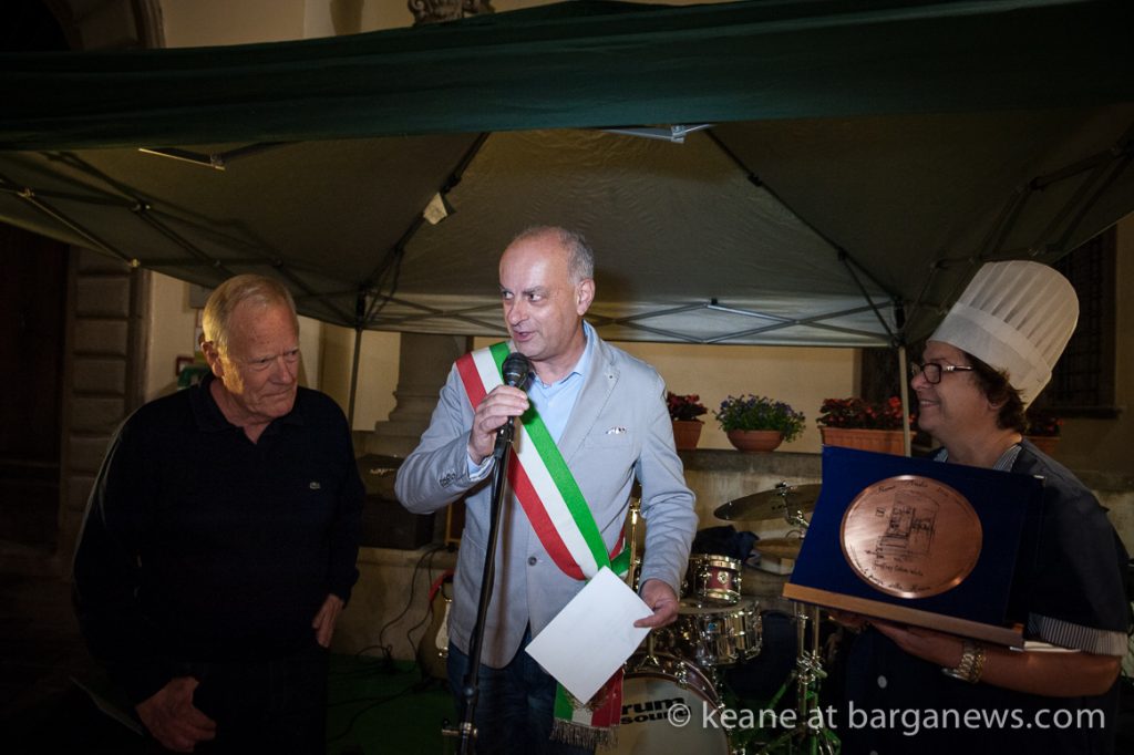 During a break in the evening the Mayor of Barga Marco Bonini was on hand to present this year’s “Aristo 2016 – La Piazza della Musica” prize to an extremely surprised Geoff from Grizzly who had absolutely no idea that he was even in the running for the award.