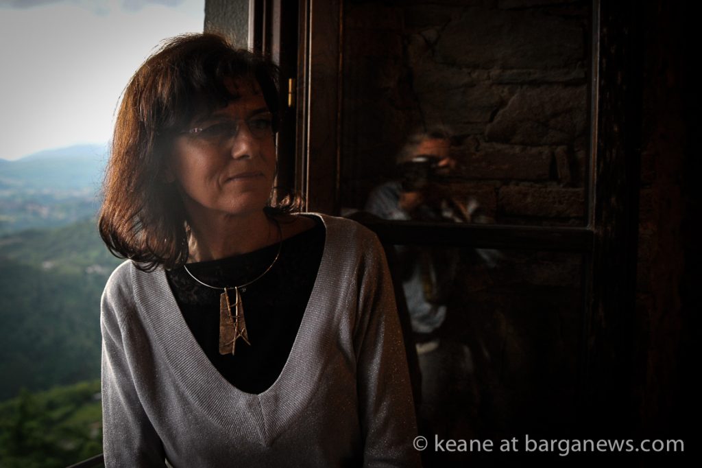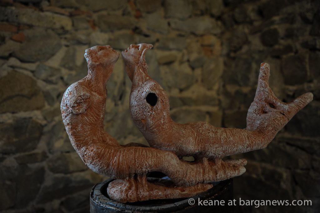 The second artist, Mirella Gerosa from Milan was exhibiting a series of terracotta figures which perfectly melded with the tone of the stone walls and terracotta tile flooring and as you can hear in the interview below (in Italiano) works in bronze and also smaller scale pieces including jewellery which she defined as “wearable sculpture”
