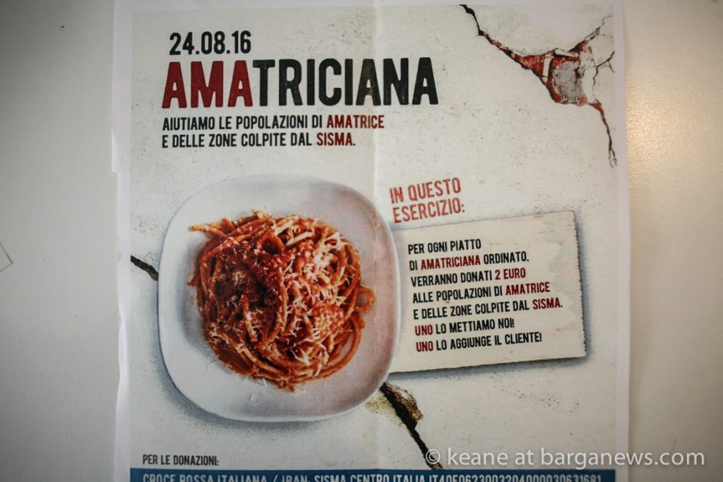 2 euro will be donated to the disaster fund for every plate they serve of spaghetti all’amatriciana – a dish of tomato sauce and pork cheek.