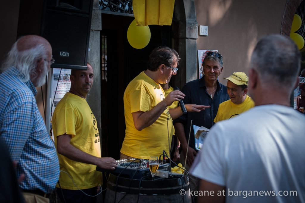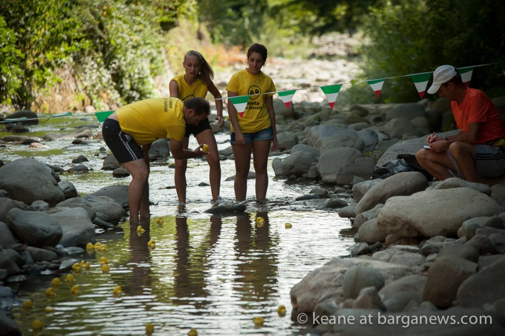 The tiny yellow ducks were released further upstream and the first one to pass under the bridge won a €100 voucher for any shop or restaurant in Barga, second prize – a €50 voucher.