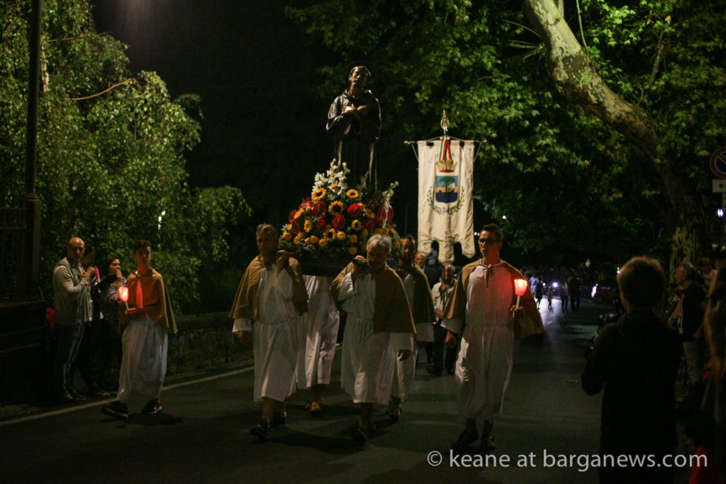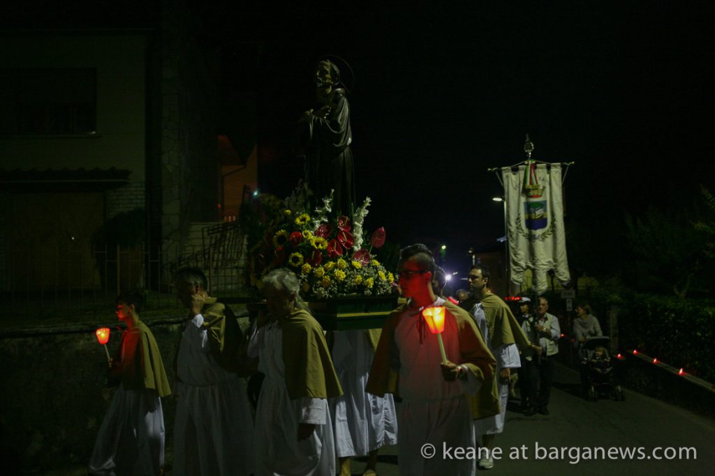 Come ogni anno, questa sera la statua del santo è stata portata in processione sorretta da quattro uomini, preceduta da don Stefano Serafini e seguita da mezza cittadina in un corteo che si è snodato dalla Cappella di San Francesco fino a Bellavista mentre le campane del Duomo suonavano a festa.