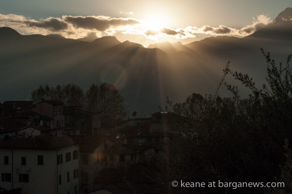 If the conditions are right and you are in the right place at the right time, it is possible twice a year, on the 30th -31st January and the 11th -12th November to see the doppio tramonto – the double sunset viewed from outside the Duomo in Barga Vecchia.