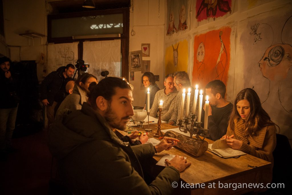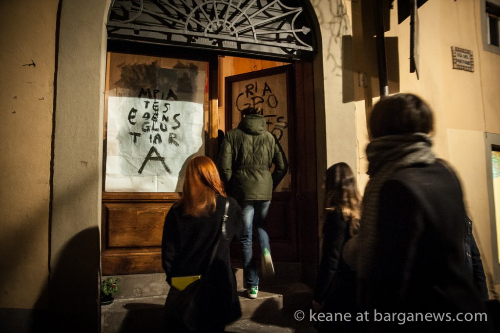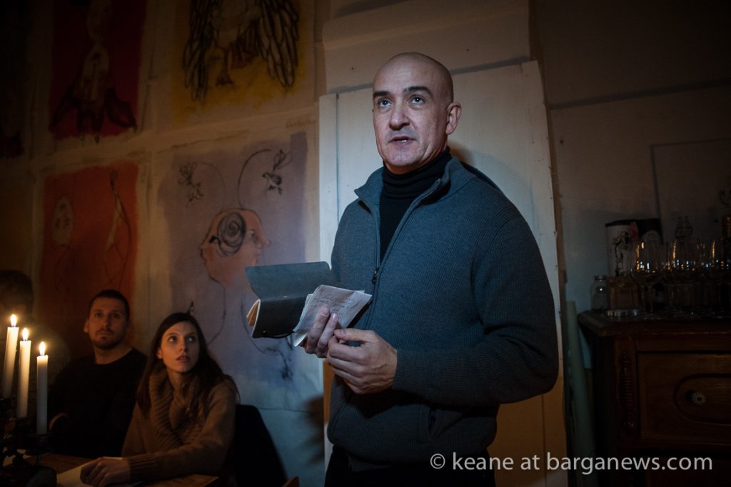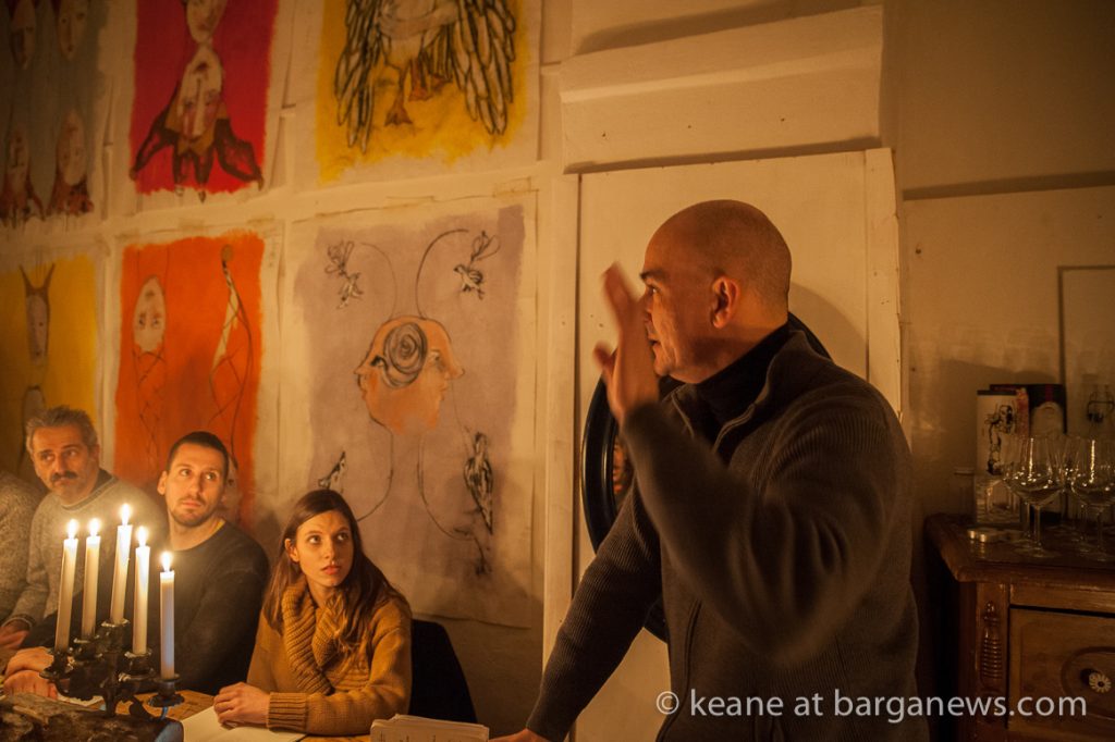This evening he was back in in Barga Vecchia, this time in Giorgia Madiai’s studio and once again attempting a mental voyage with wine as a central character in his story.