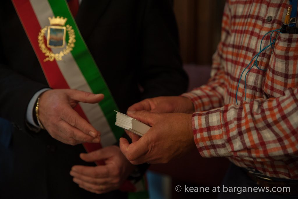 A copy of the cards were presented to the Mayor of Barga, Marco Bonini and a second set were added to the Barga Cultural Geocache project