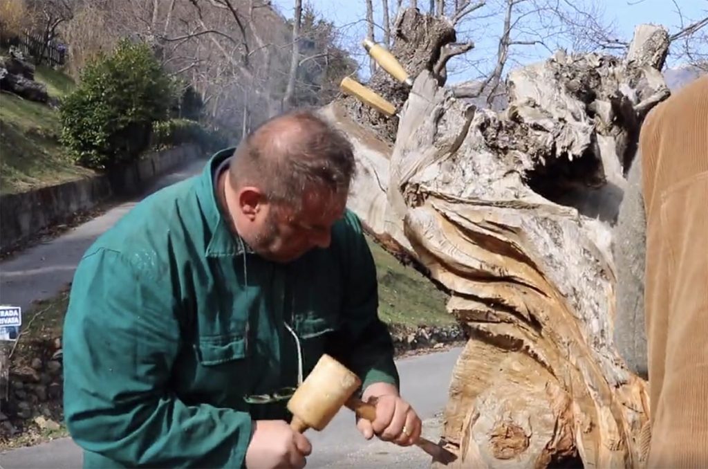 Since then three artists from Barga have been working on a monument to that wind and its relationship with the trees and using as their medium a centuries old chestnut tree which had been brought to its knees on that eventful evening.