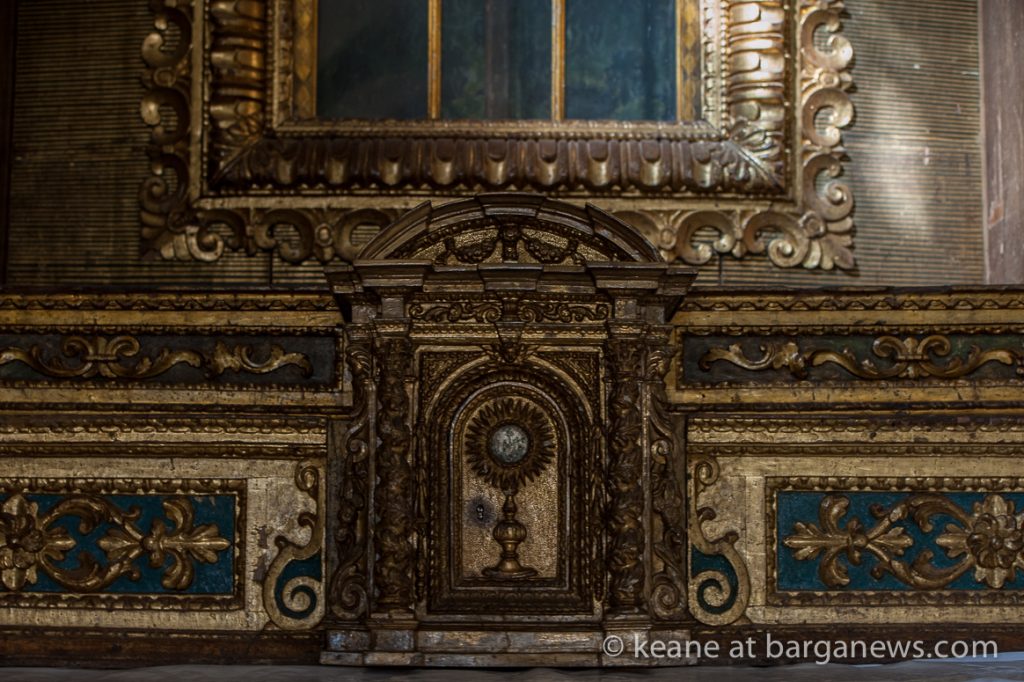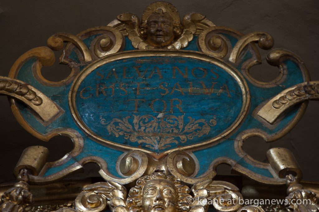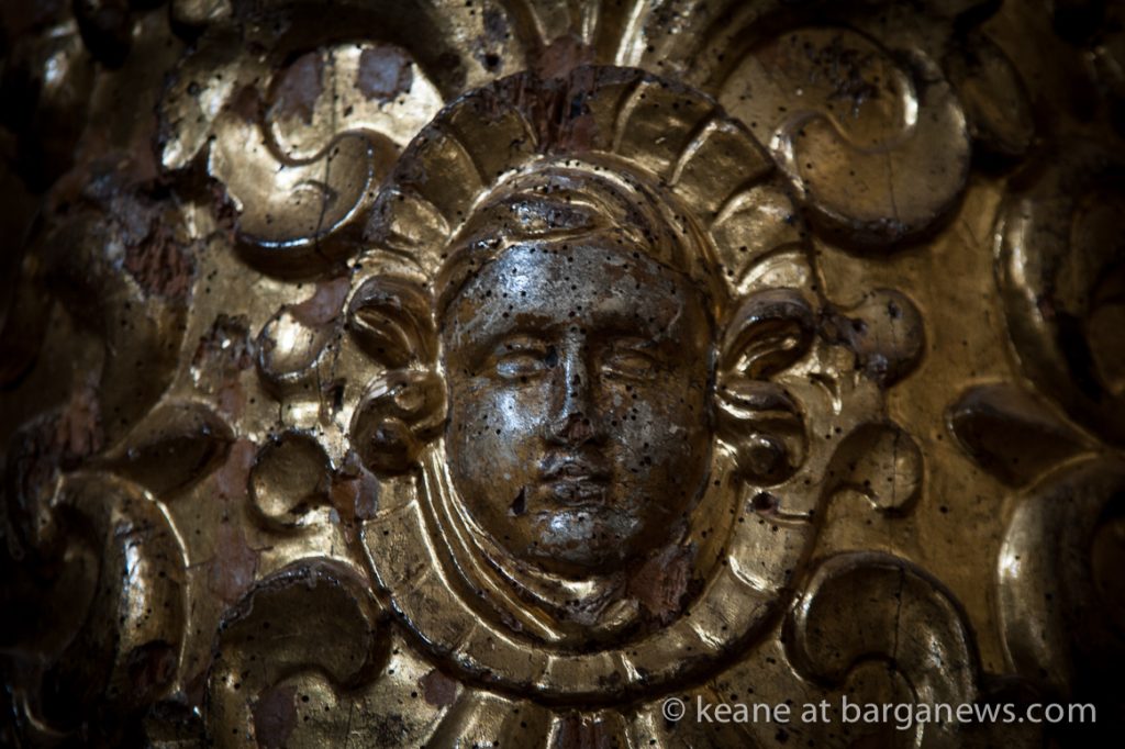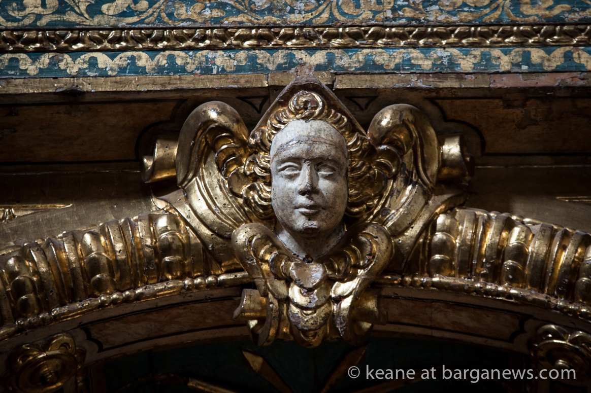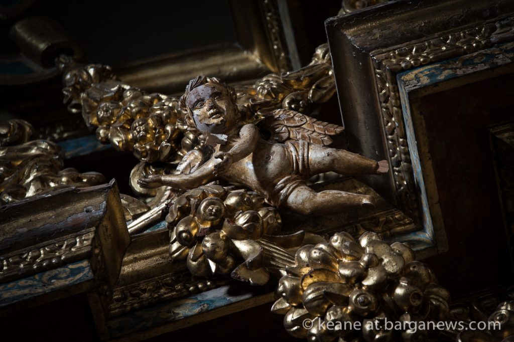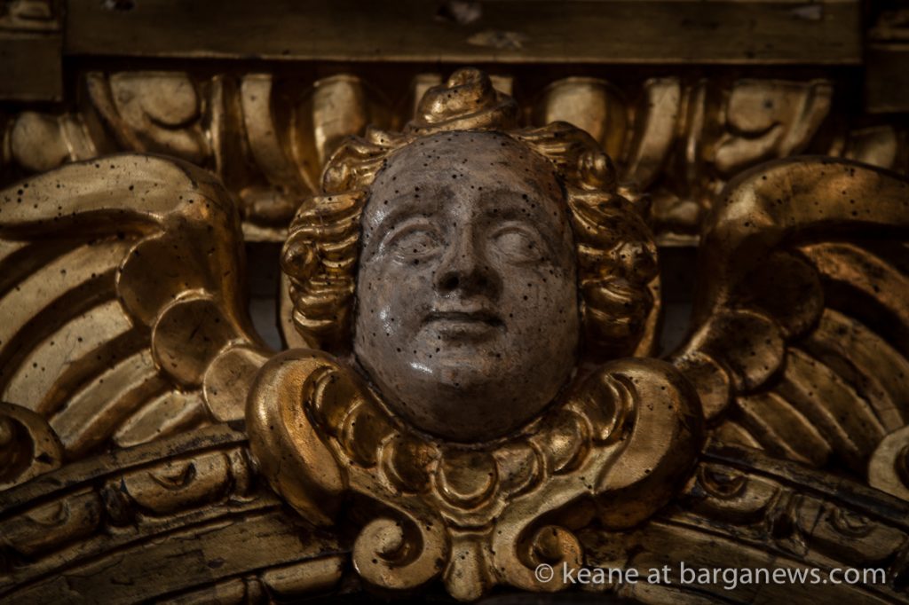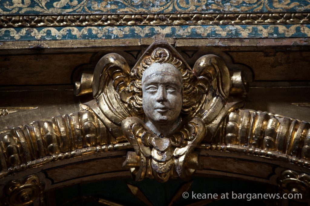 Two years ago (article here) the Baroque altar in gilded wood in the church was damaged by thieves who removed by force two of the wooden and gilded angel faces which were on either side of the alter.